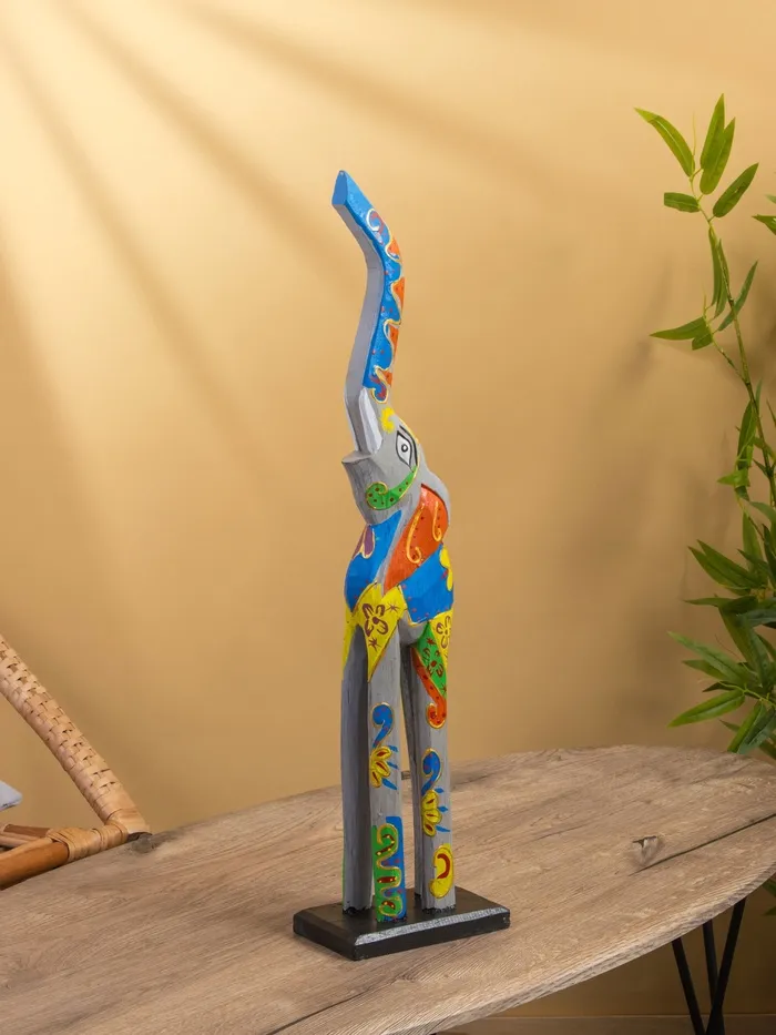 Сувенир "Слон пёстрый" дерево на подставке 9х16х60 см — Характеристики