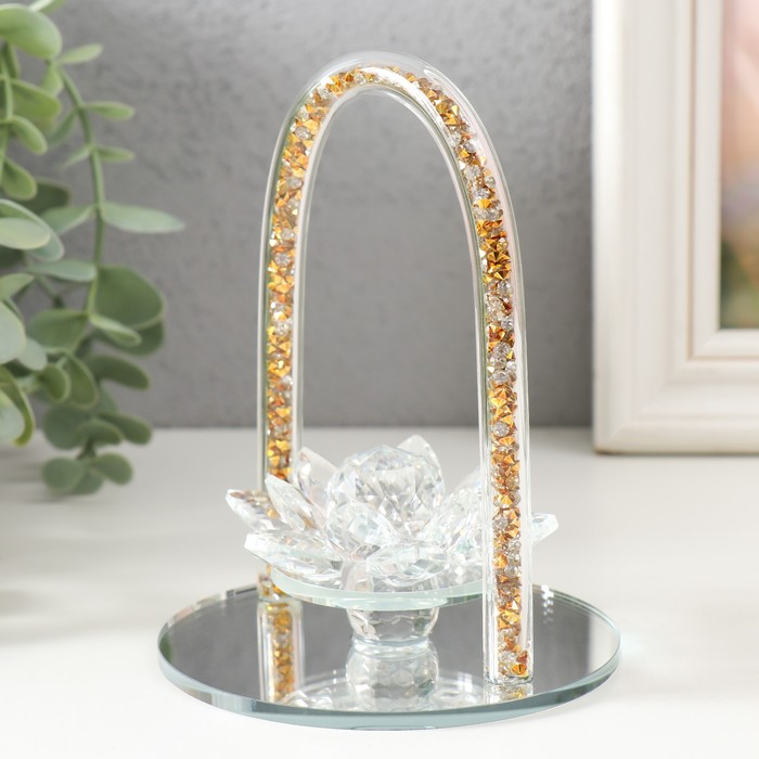 Сувенир стекло "Лотос с аркой на пьедестале" прозрачный 10*10*13,5 см — Характеристики