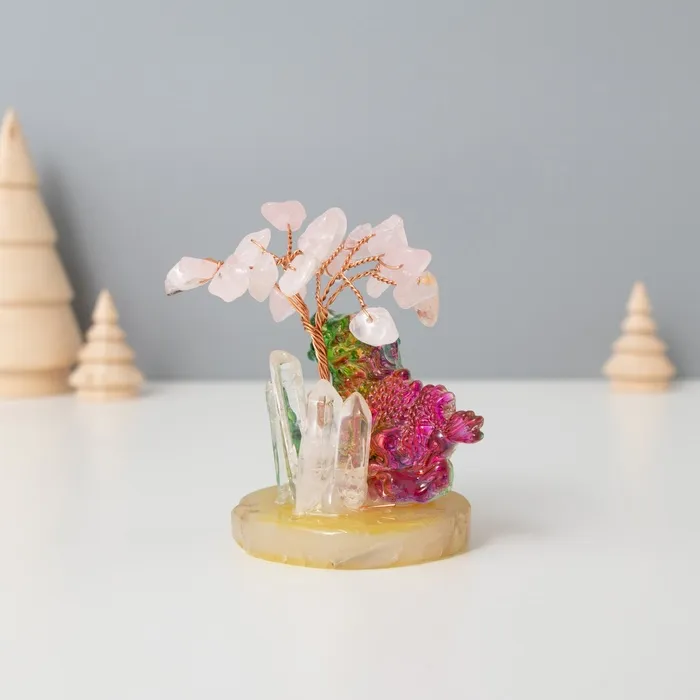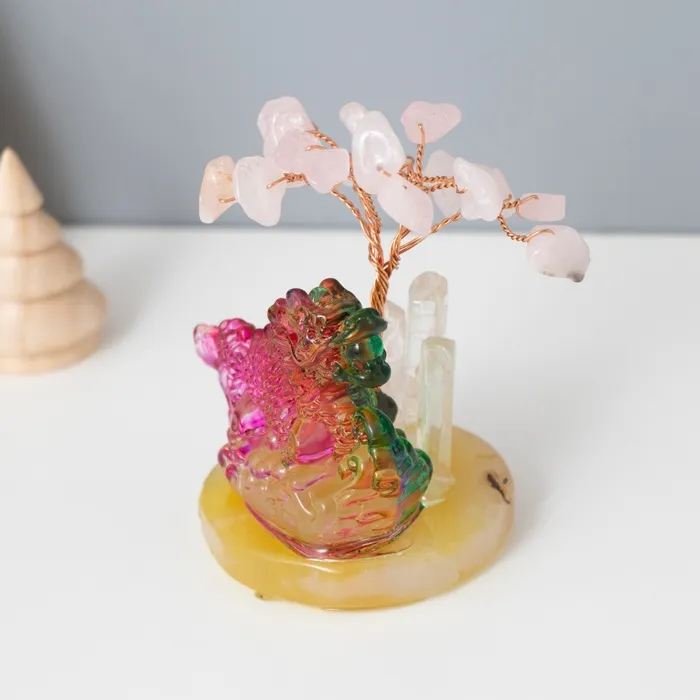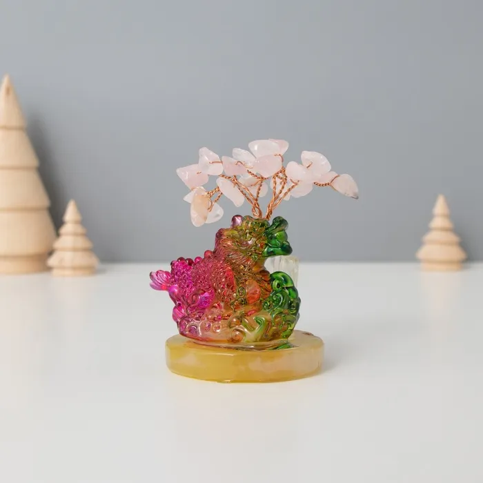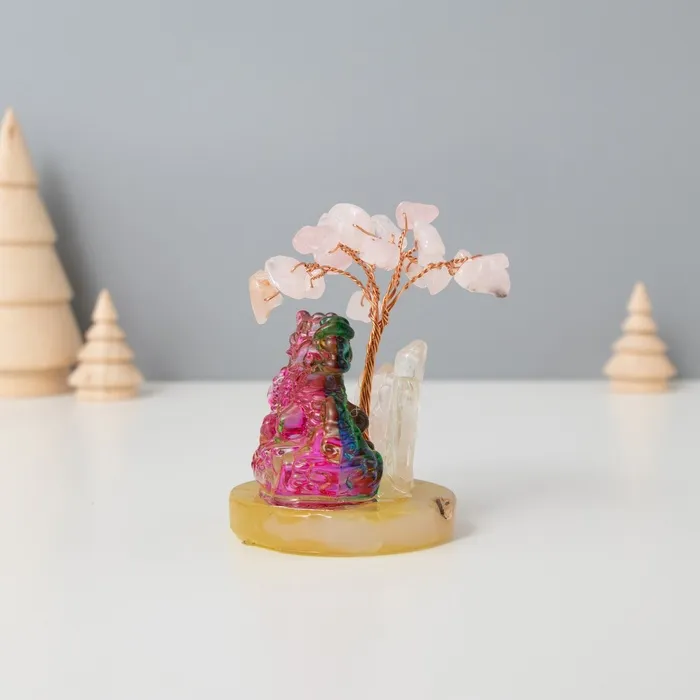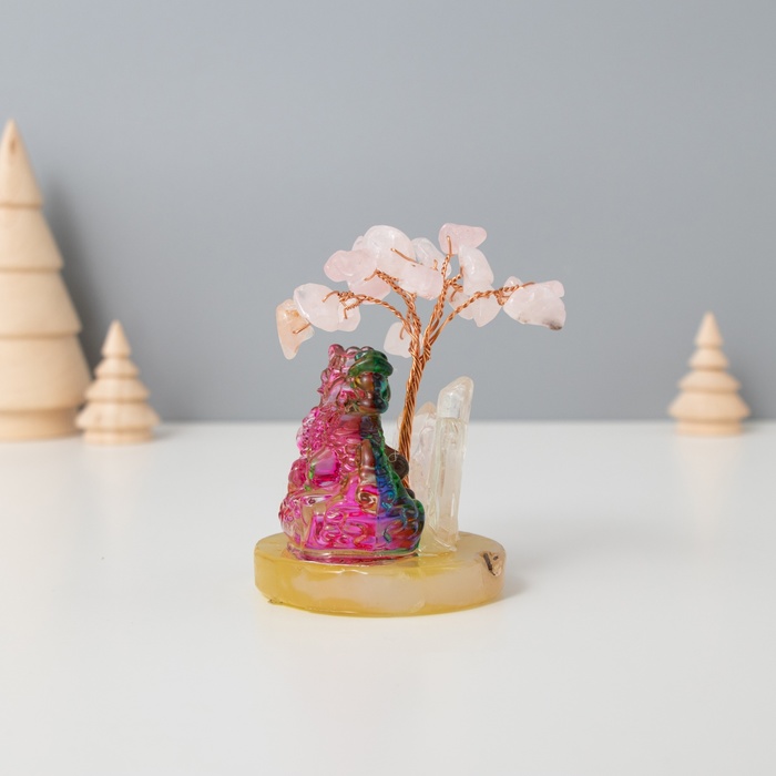 Сувенир стекло, металл "Деревце под защитой дракоши" 18 камней, розовый 5,5х5,5х9 см — Характеристики