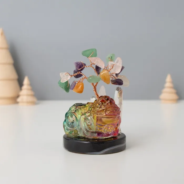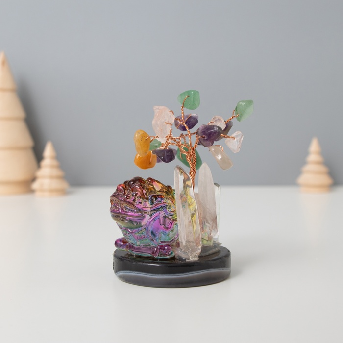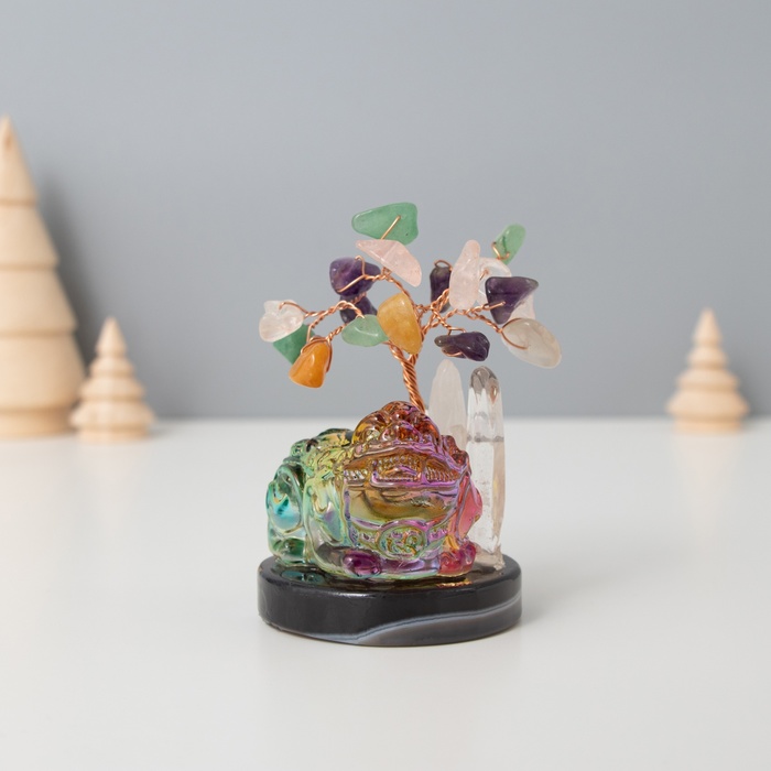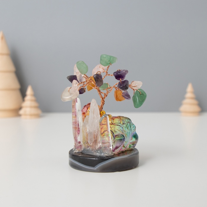 Сувенир стекло, металл "Деревце под защитой льва" 18 камней, цветной 5,5х5,5х9 см — Характеристики