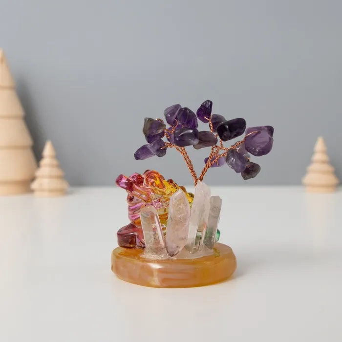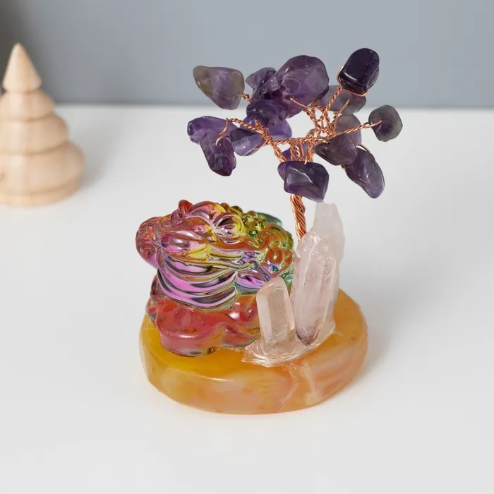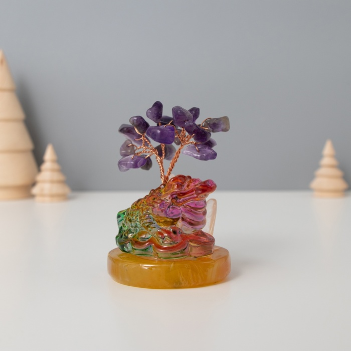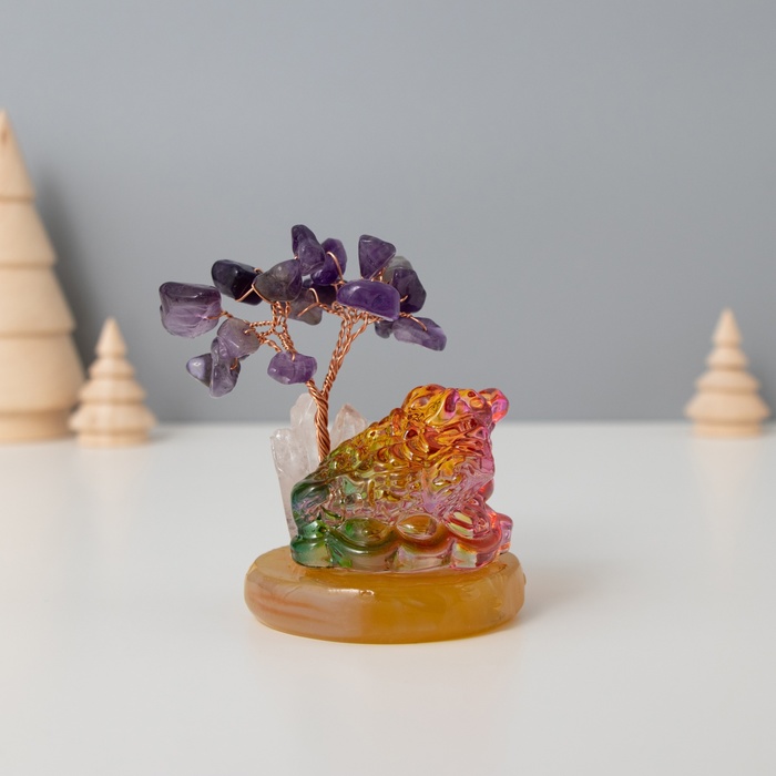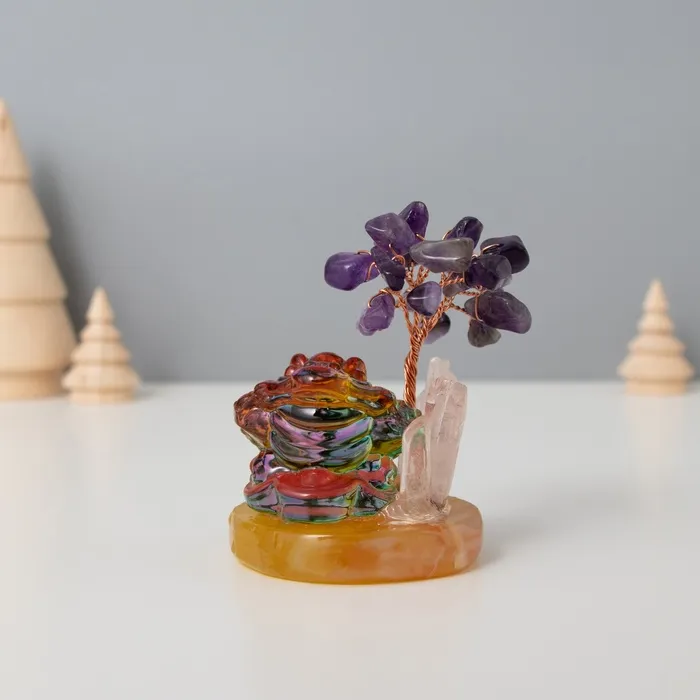 Сувенир стекло, металл "Деревце под защитой жабы" 18 камней, фиолетовый 5,5х5,5х9 см — Характеристики