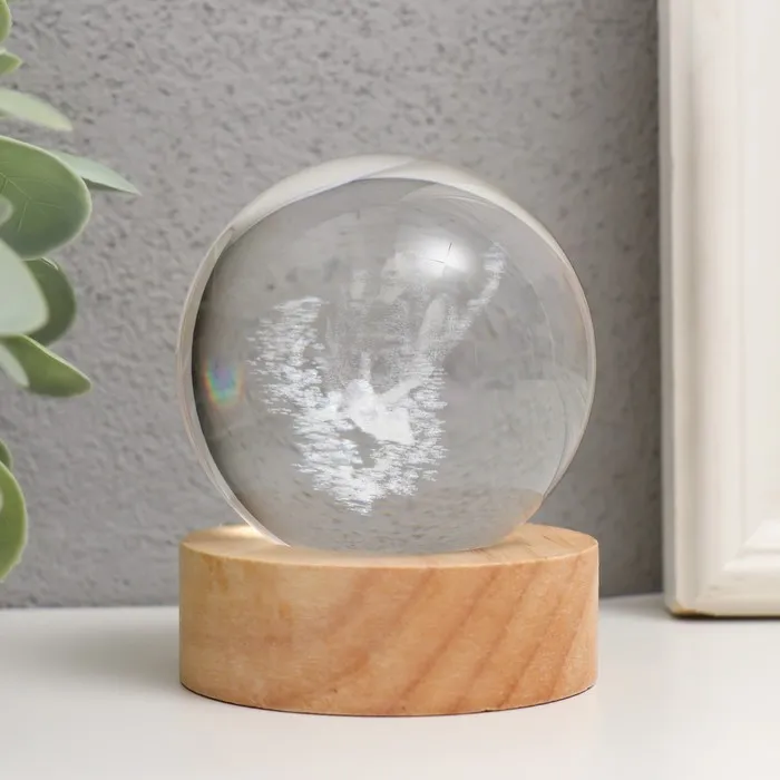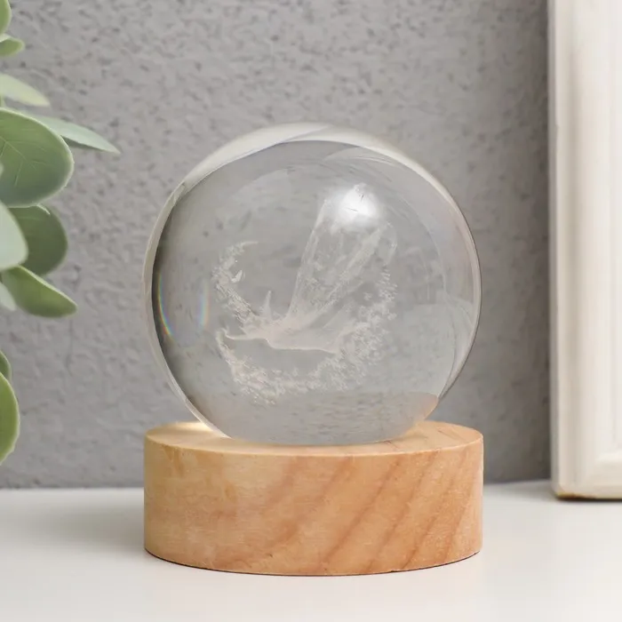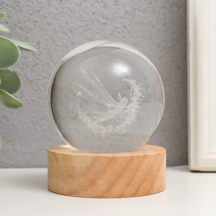 Сувенир стекло подсветка "Фея" d=6 см подставка дерево, USB 6,5х6,5х7,5 см — Характеристики