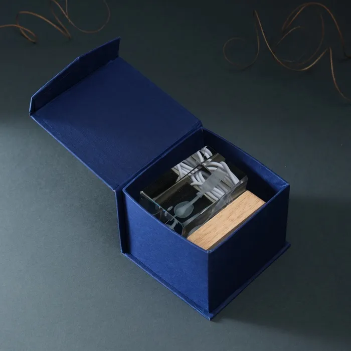Сувенир стекло подсветка "Прямоугольник. Бокал и вино" подставка дерево, USB 7х7х10