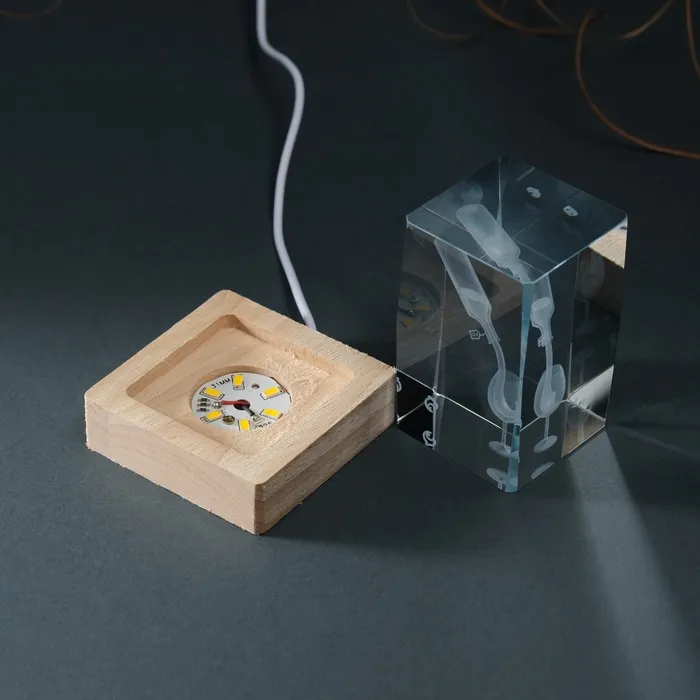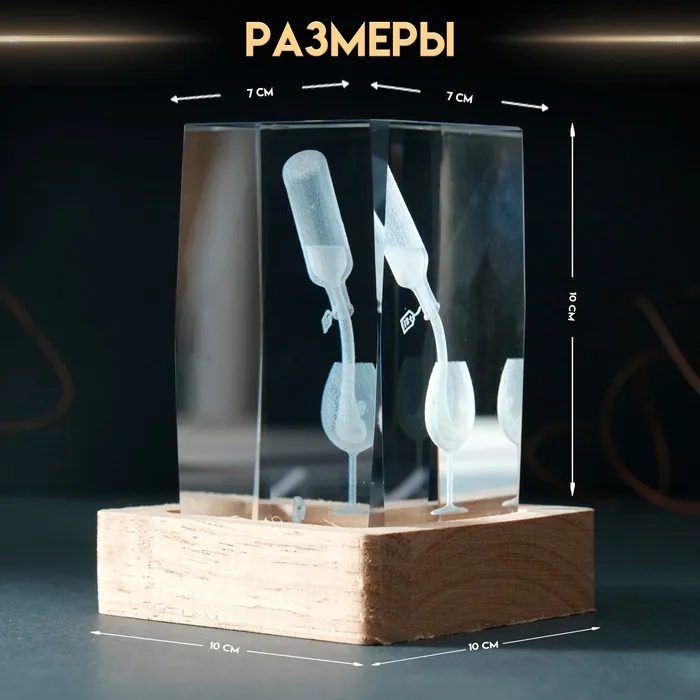 Сувенир стекло подсветка "Прямоугольник. Бокал и вино" подставка дерево, USB 7х7х10 — Характеристики