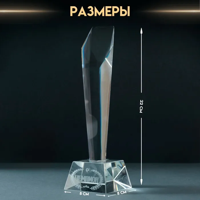Сувенир стекло стела "Приз - Чемпион" 8х8х22 см — Характеристики