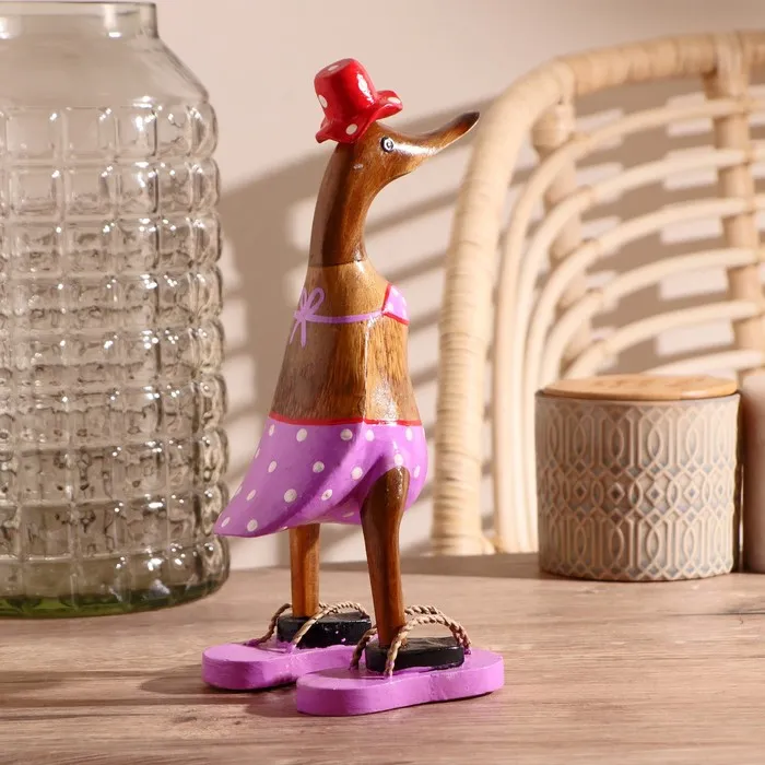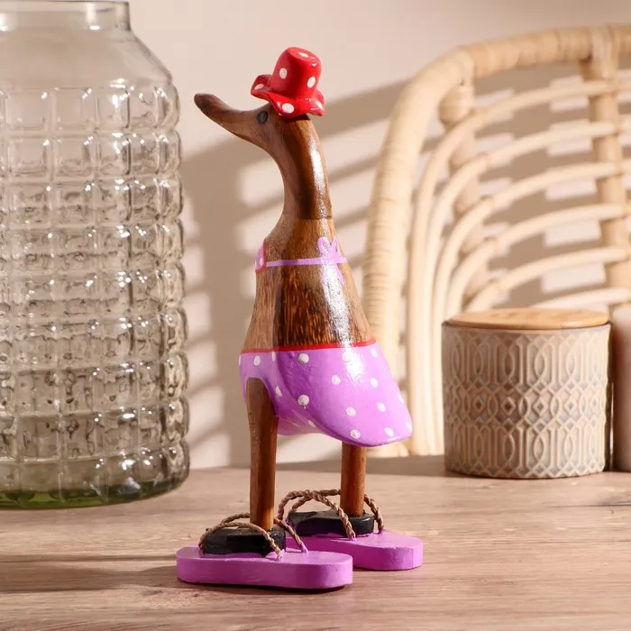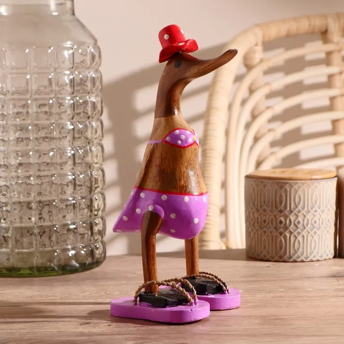 Сувенир «Утка в лиловом купальнике и сланцах», 13×9×27 см, дерево — Характеристики