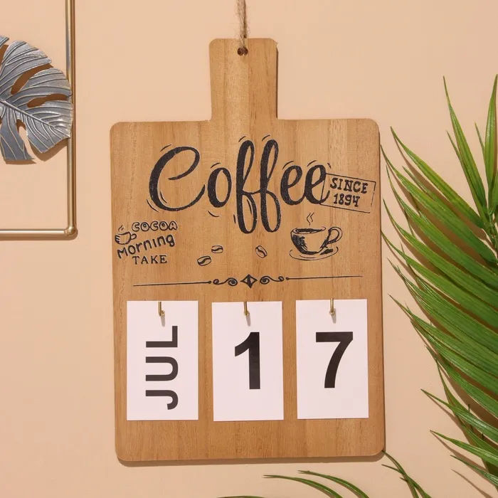 Сувенир вечный календарь подвесной Coffee, 0.7×17×26.5 см, дерево, бесцветный — Характеристики