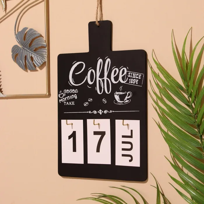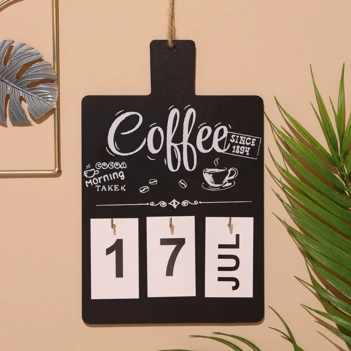Сувенир вечный календарь подвесной Coffee, 0.7×17×26.5 см, дерево, чёрный — Характеристики