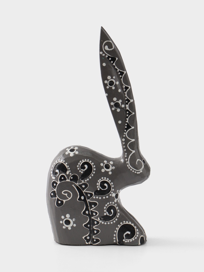 Деревянный заяц — выразительная скульптура высотой 24 см, выполненная вручную из натурального дерева. Его вытянутая форма и мягкие серые тона создают ощущение спокойствия, а намёк на пасхальную символику делает его уместным в праздничные дни и в повседневной жизни. Это не просто сувенир — это тихий напоминатель о весне, обновлении и простых радостях.