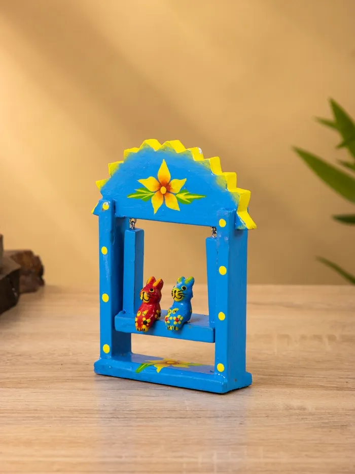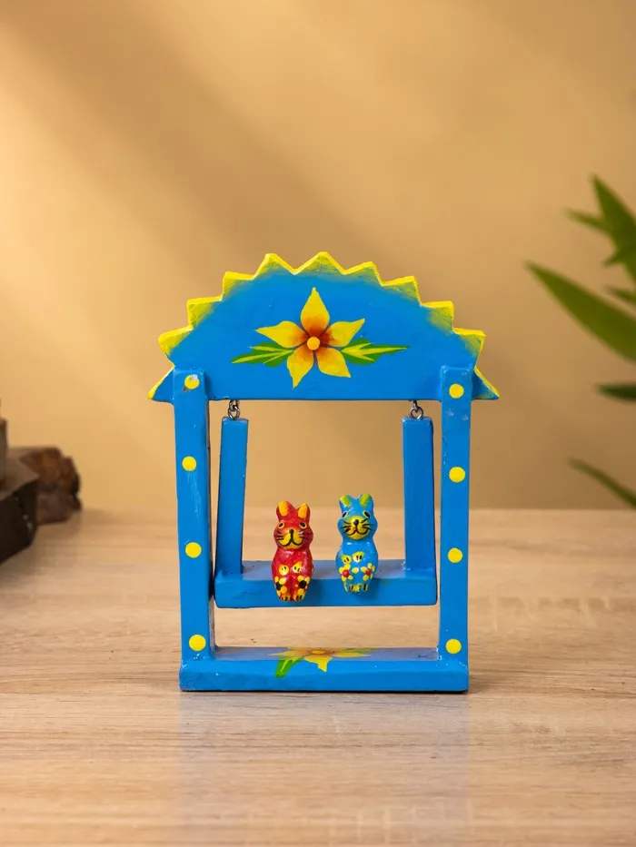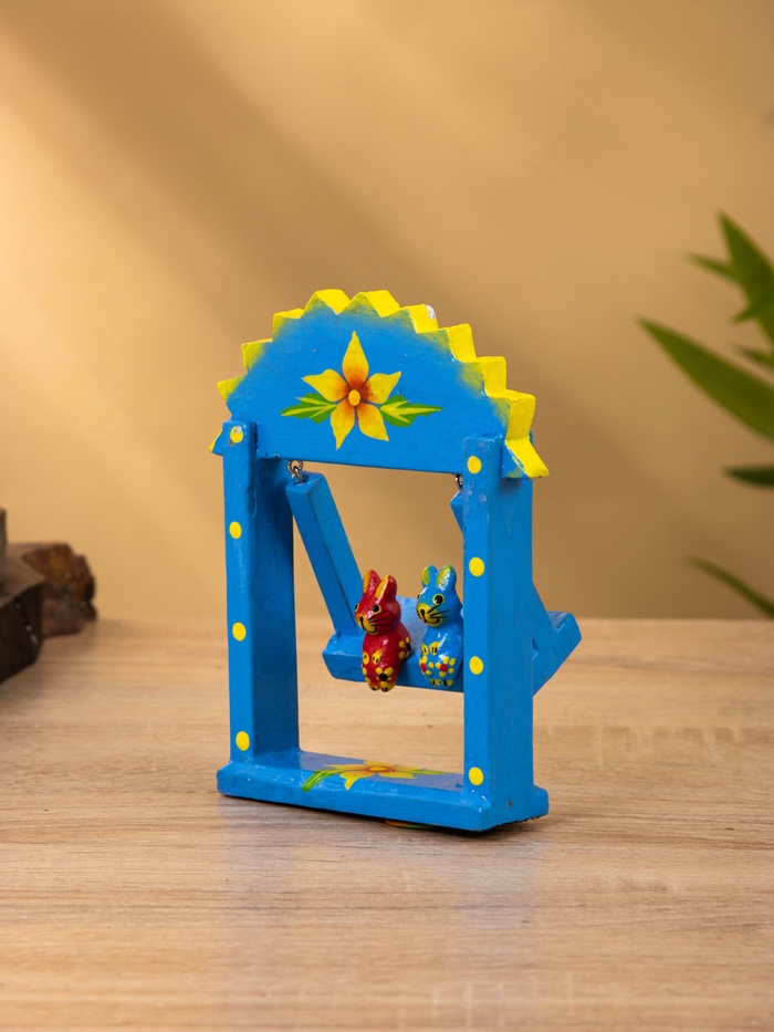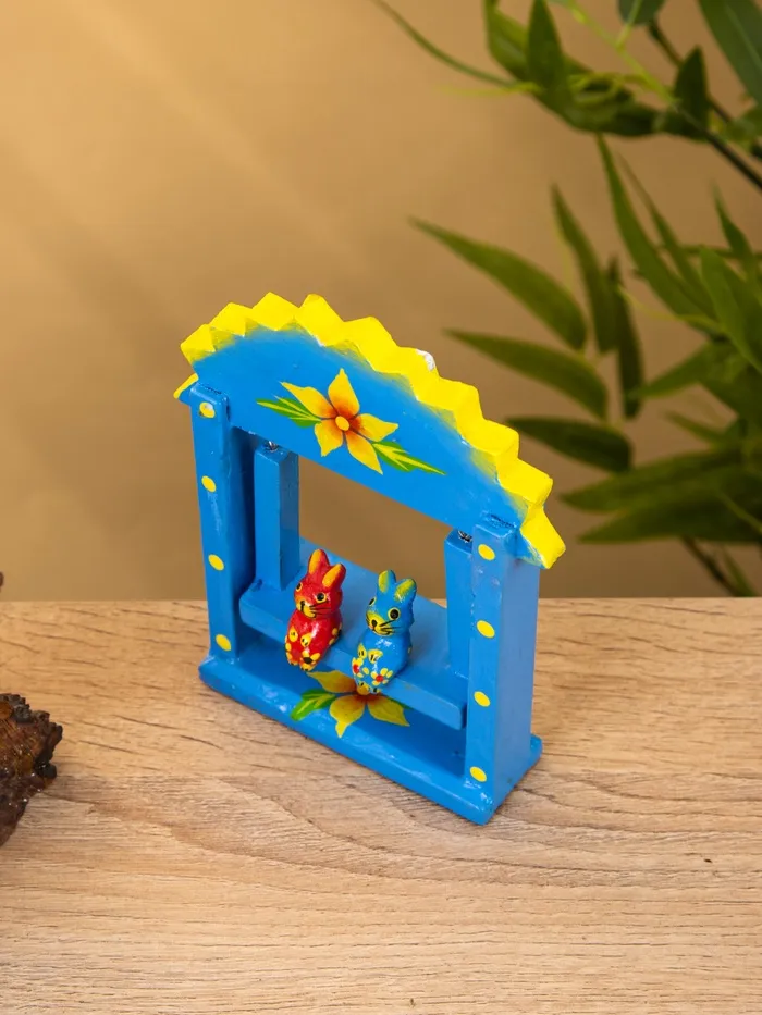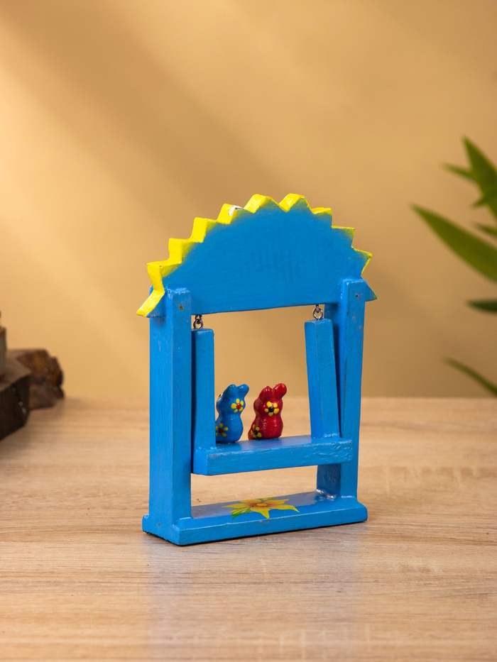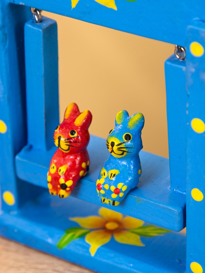 Сувенир «Зайки на качелях», 11×5.4×14.4 см, дерево, синий — Характеристики