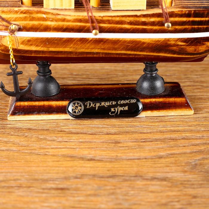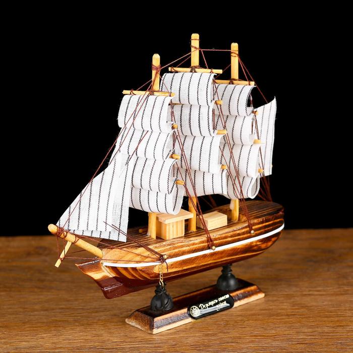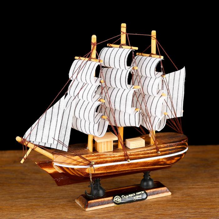 Морская романтика манит представителей сильного пола с самого детства, как десятилетнего мальчишку, так и взрослого мужчину. Сувенирная модель корабля «Акару», 20×4.5×19 см - займет достойное место в любом доме, офисном пространстве или в рабочей зоне. Счастливый обладатель данной модели с гордостью будет демонстрировать корабль и выставлять на всеобщее обозрение. И неспроста, ведь такой сувенир не только демонстрирует статус, но и одновременно намекает на силу и непоколебимость натуры, готовность к трудностям, умение жить.