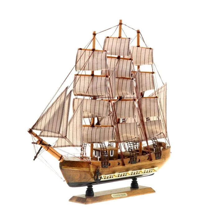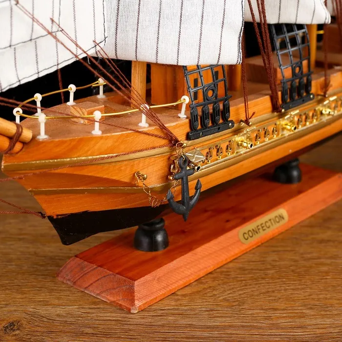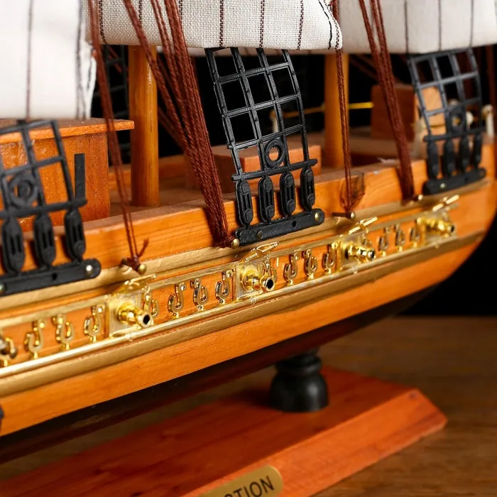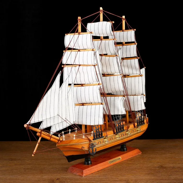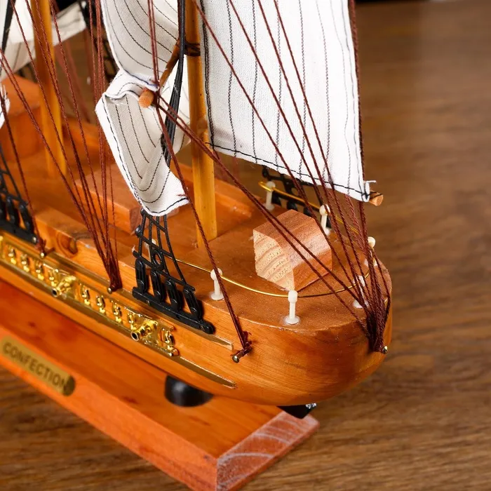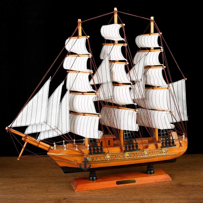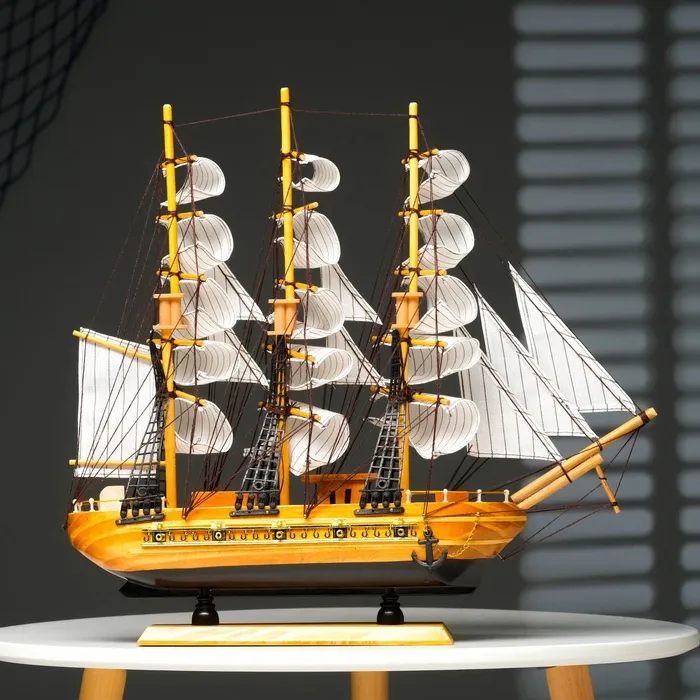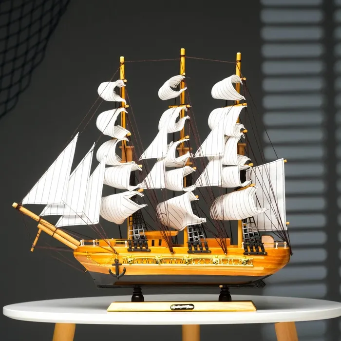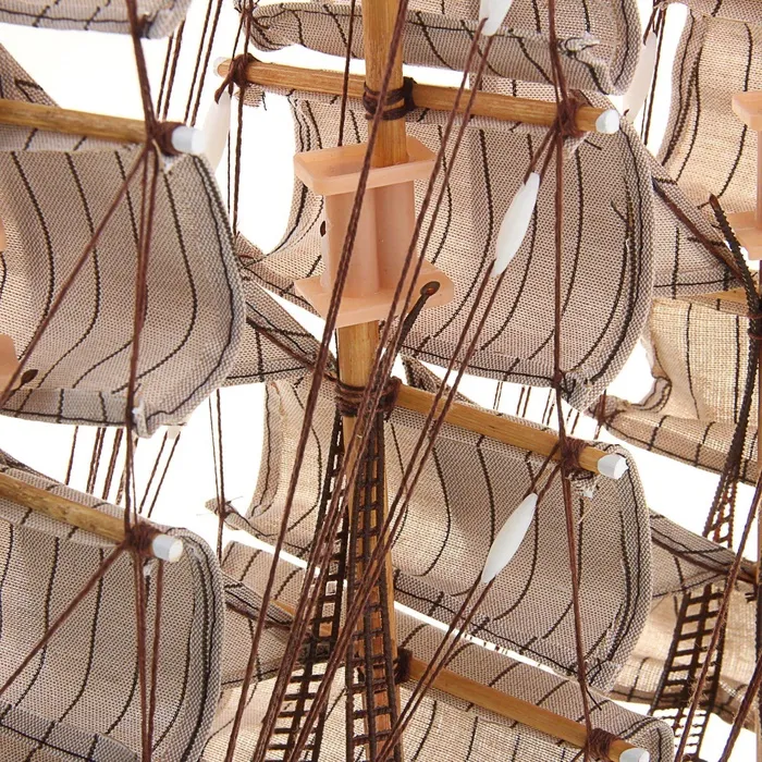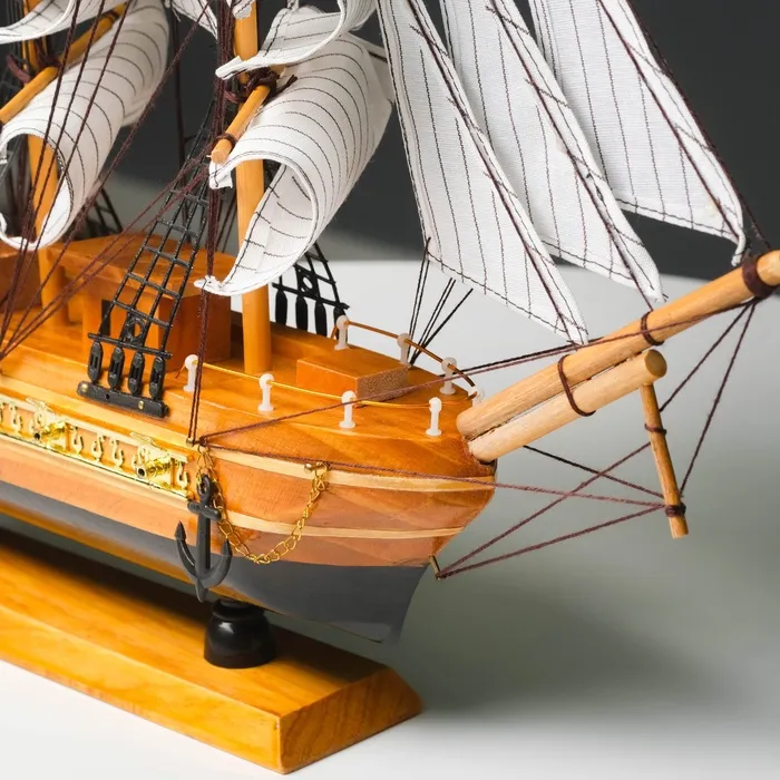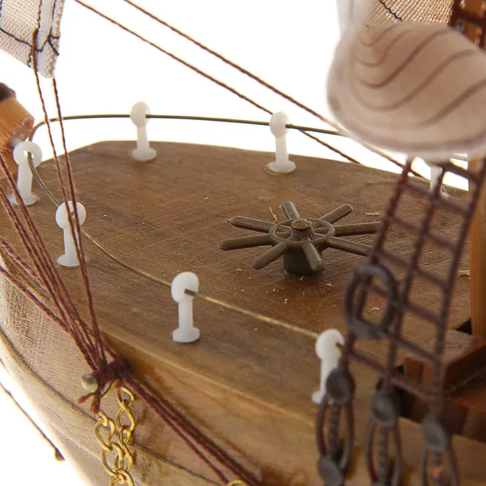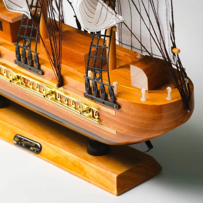 • Качественные материалы: корпус сделан из дерева, а паруса — из текстиля, что придаёт модели долговечность и реалистичность.