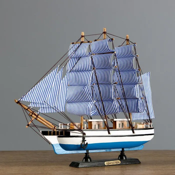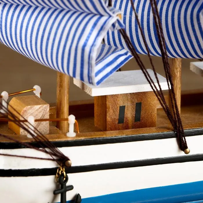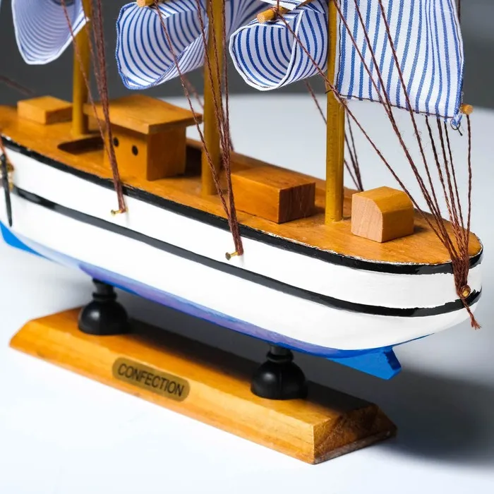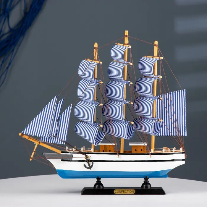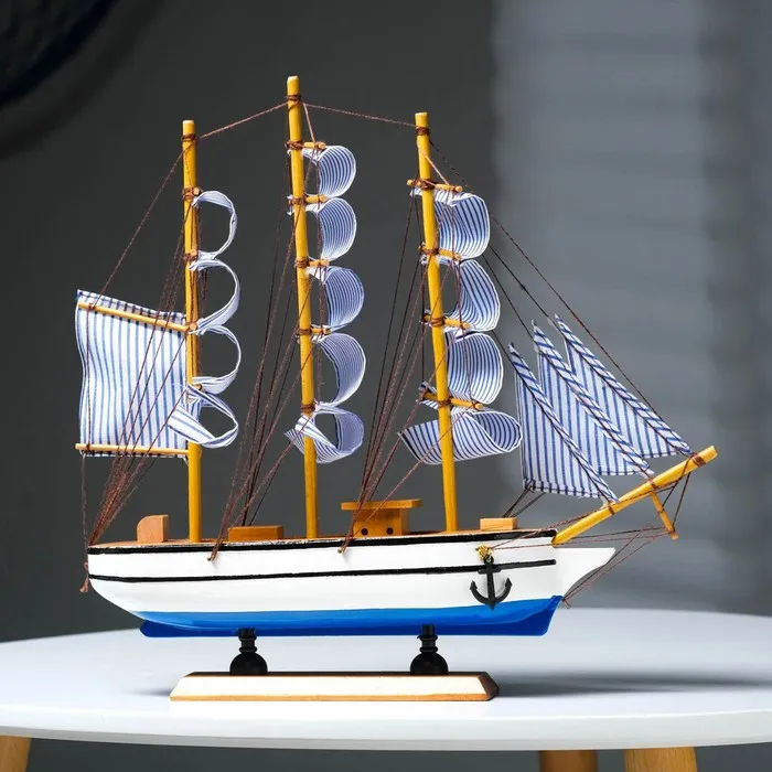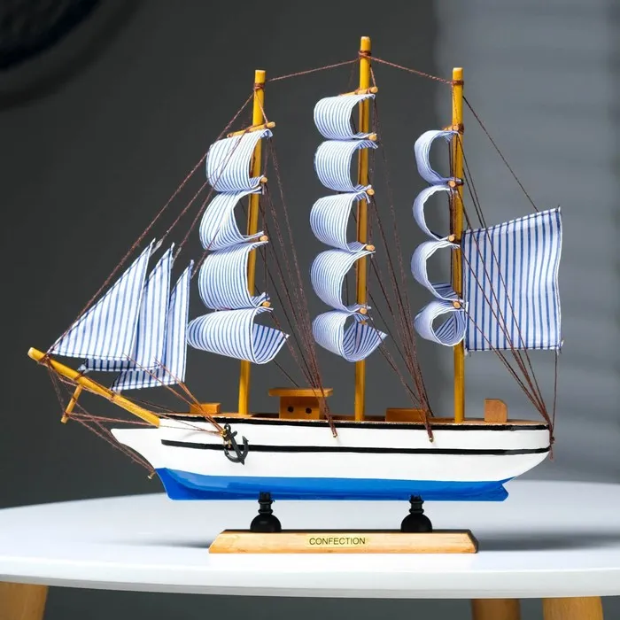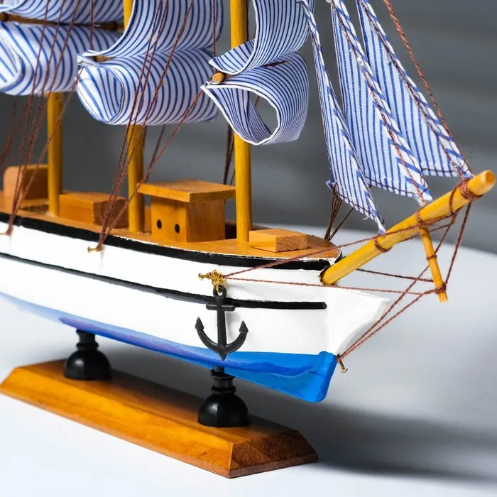 Сувенирная модель корабля «Чесма», трёхмачтовый сине-белые паруса, 34×7×32 см — Характеристики