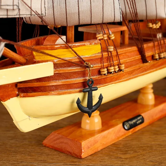 Сувенирная модель корабля «Диана», светлое дерево, паруса бежевые, 10×50×45 см — Характеристики