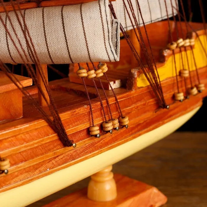 Эта модель корабля подходит для украшения интерьеров в морском стиле, а также для демонстрации в личных коллекциях. Изящная отделка и внимание к деталям делают её отличным экспонатом в офисах или гостиных, добавляя уют и индивидуальность.