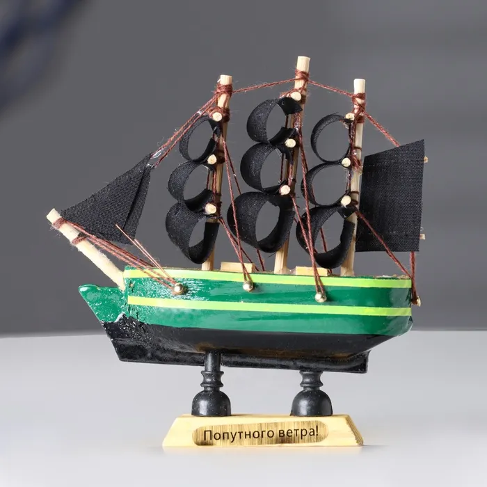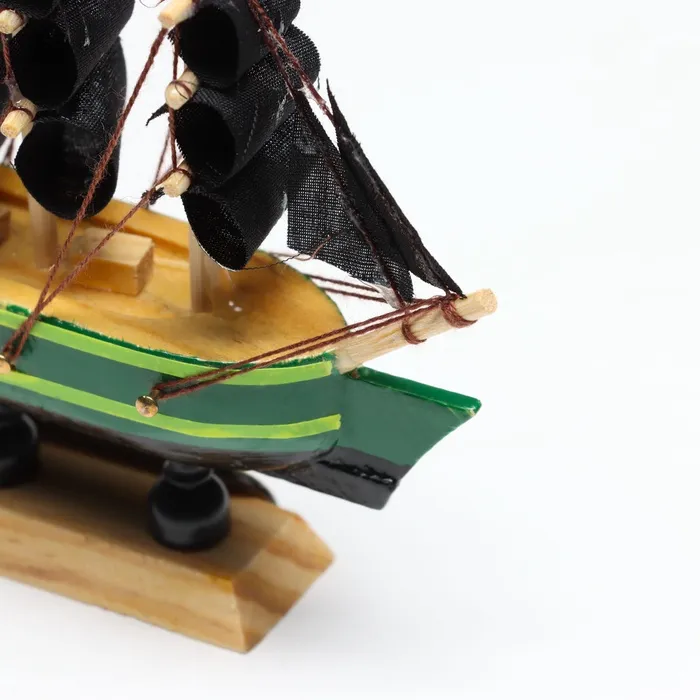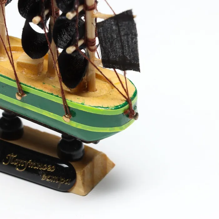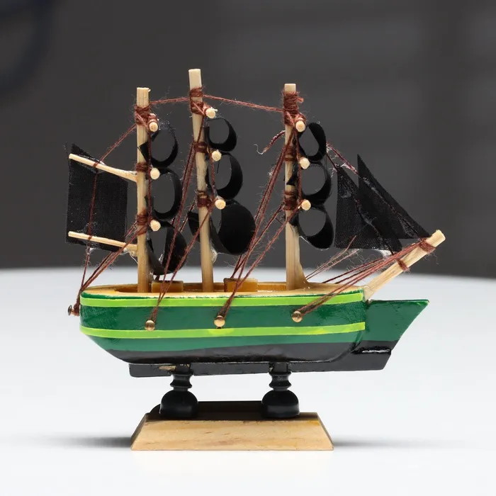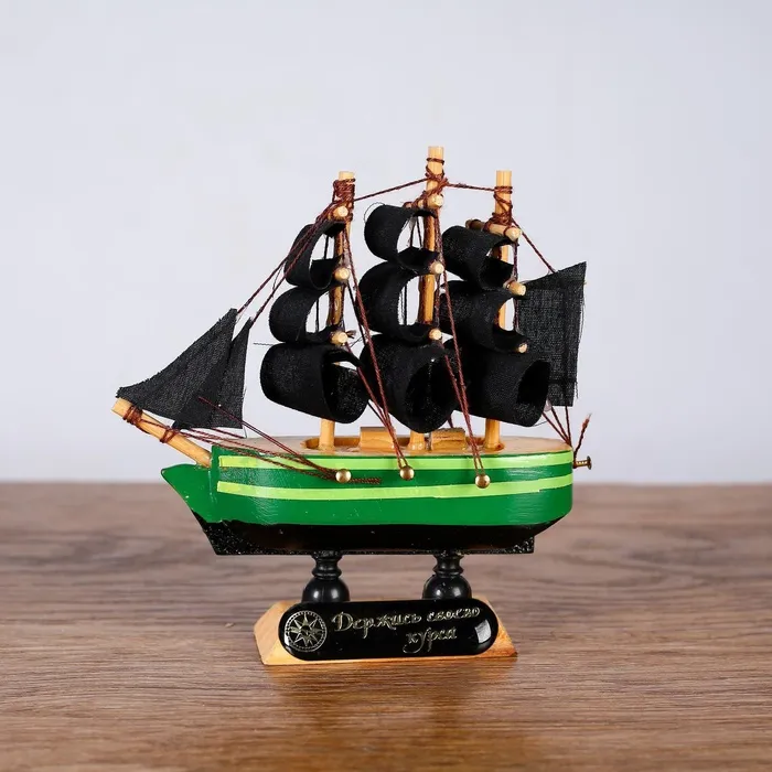 Миниатюрная копия корабля «Дункан» с зелёным корпусом и чёрными парусами станет стильным дополнением в вашем интерьере и оригинальным подарком. Этот сувенир подчеркнет изысканный вкус своего обладателя, добавляя в помещение атмосферу приключений и морских путешествий.