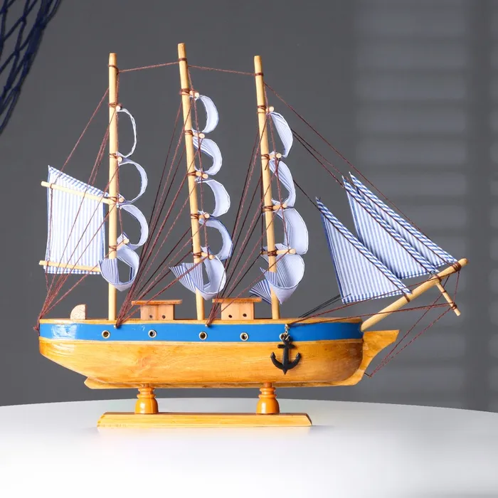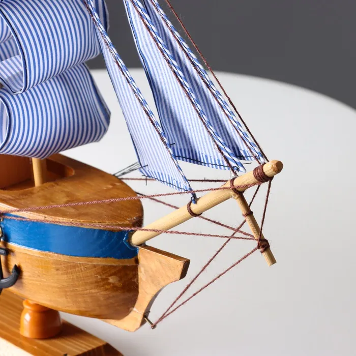Изящная модель парусника станет отличным подарком на День защитника Отечества или декоративным элементом в любом интерьере. Эта миниатюра представляет собой сочетание мастерства и традиций, воплощённых в дереве, пластике и текстиле. Она напоминает о приключенческом духе морских путешествий и открытий.