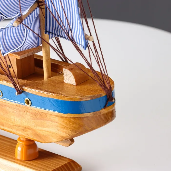 - Стильное сочетание цветов: бежевый корпус и голубые с белыми паруса подчёркивают морскую тему.