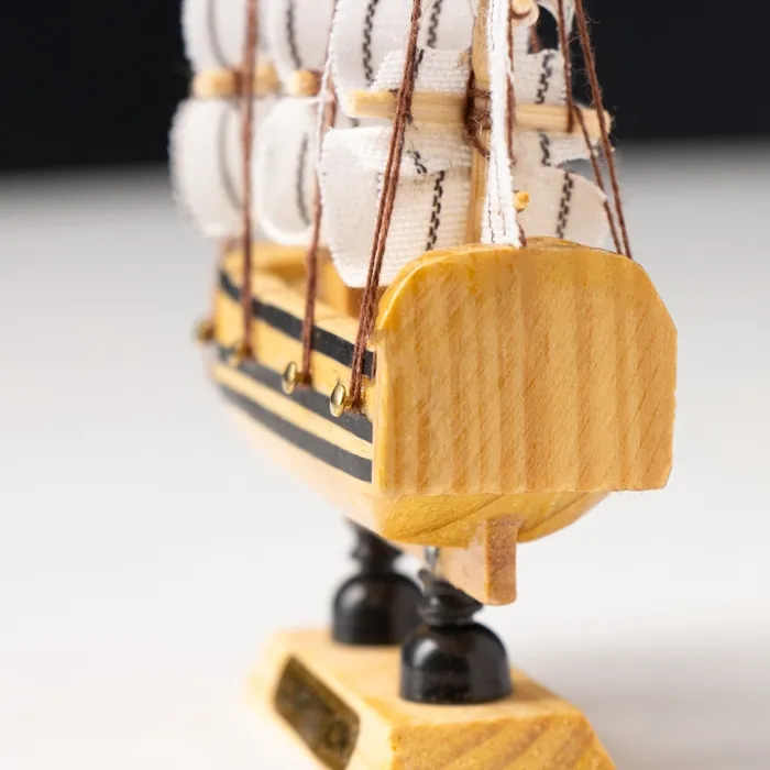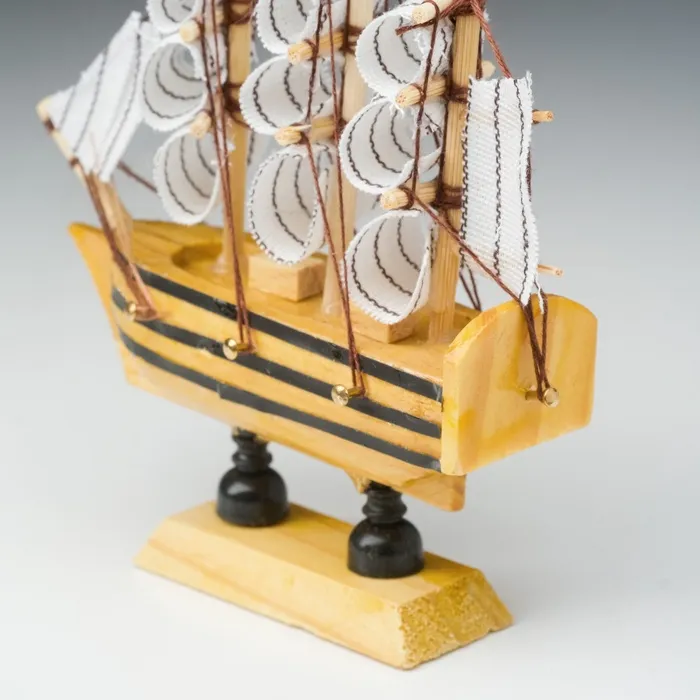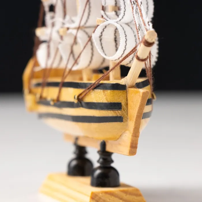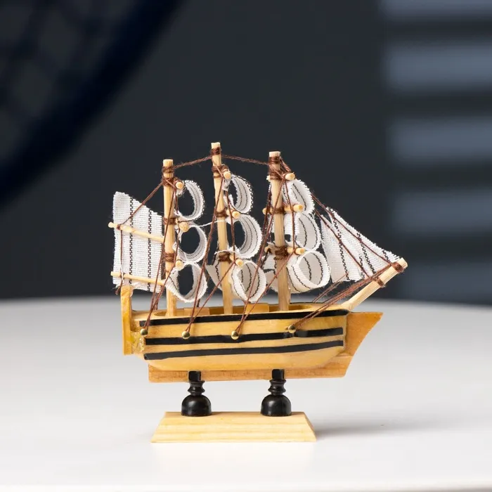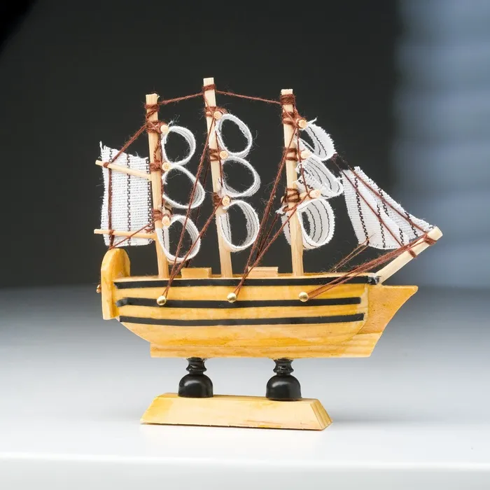 Сувенирная модель корабля — это не просто декоративный элемент, это миниатюрная дань истории и духа морских приключений. Бежевые борта и белые паруса модели напоминают о величии флотилии и романтике дальних путешествий.