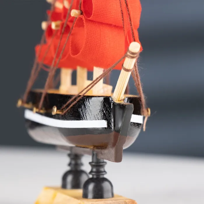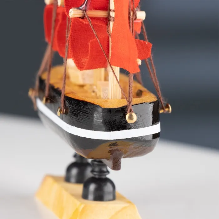 Сувенирный кораблик с алыми парусами станет оригинальным подарком и стильным украшением для вашего интерьера. Этот миниатюрный шедевр покоряет своей элегантностью и яркостью. Кораблик идеально вписывается в атмосферу праздника благодаря красным парусам и черным бортам с белой полосой, создавая ощущение морских приключений прямо у вас дома.