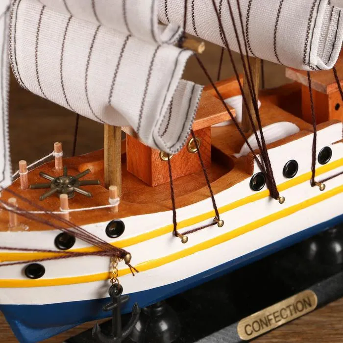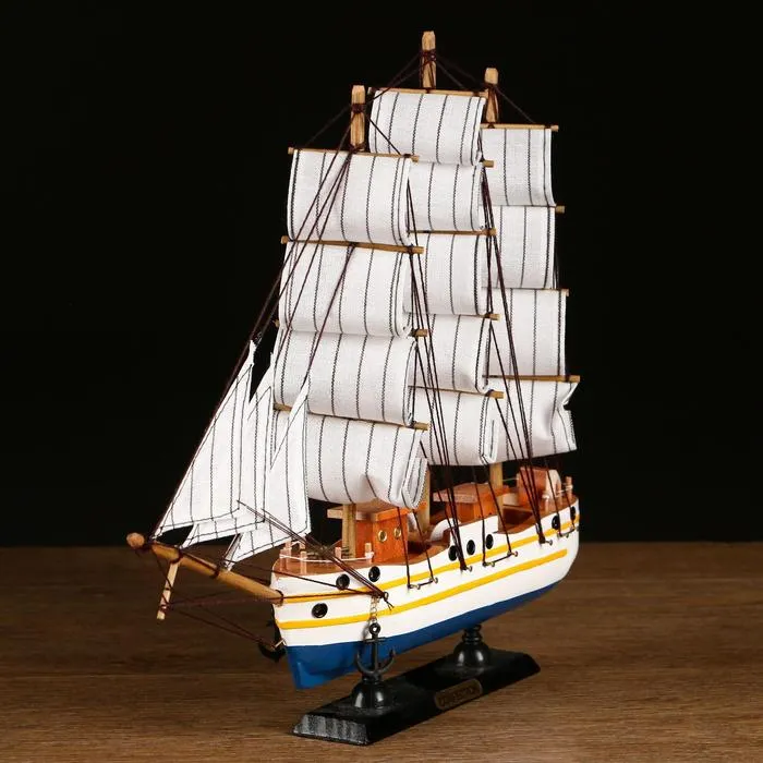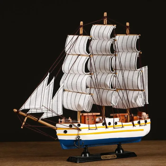 Сувенирная модель корабля «Медуза», трёхмачтовый с белыми парусами, белые борта с полосками, 33×7×32 см — Характеристики