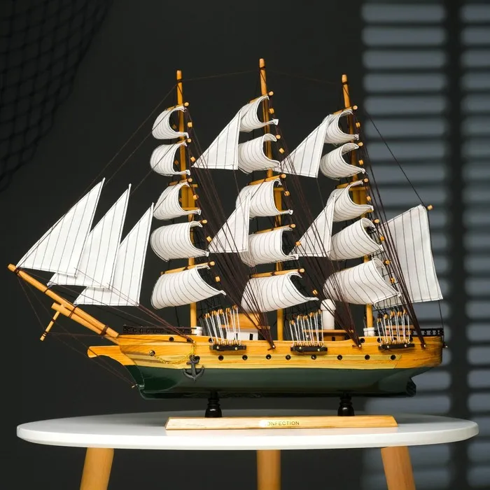Сувенирная модель корабля «Одиссея», с белыми парусами, зелёно-коричневый корпус, 58×8×48 см — Характеристики