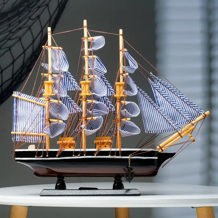 Сувенирная модель корабля «Паллада», трёехмачтовый сине-белые папруса, 40×8×35 см — Характеристики