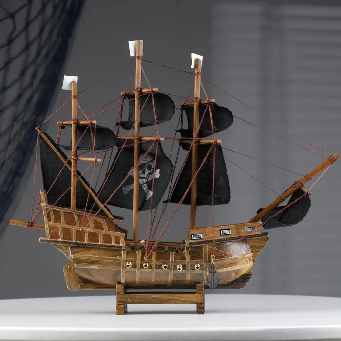 Сувенирная модель корабля «Пиратский. Уида», 33×8×29 см, чёрные паруса — Характеристики