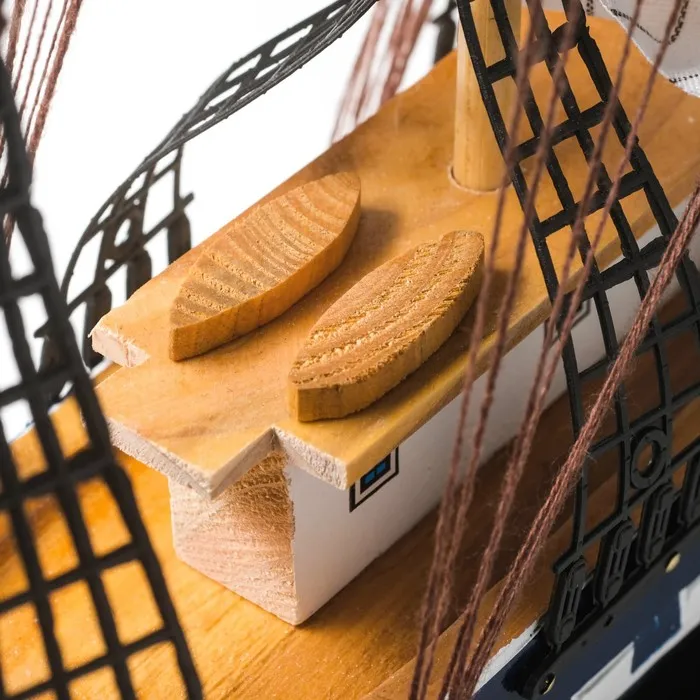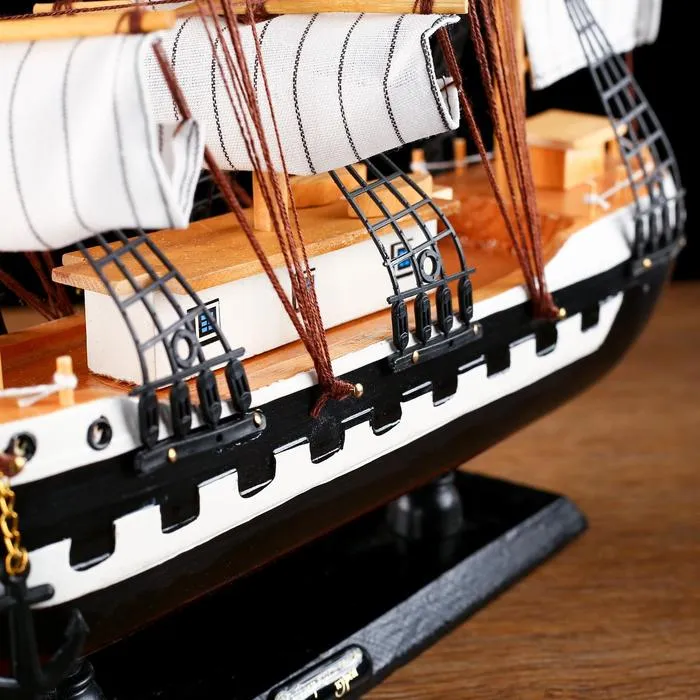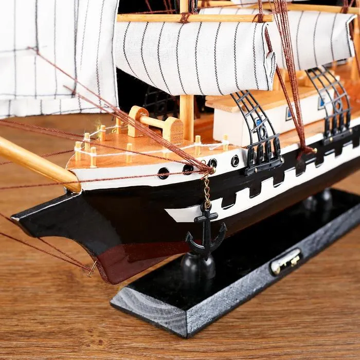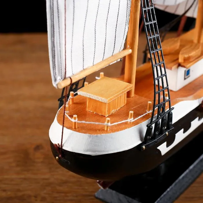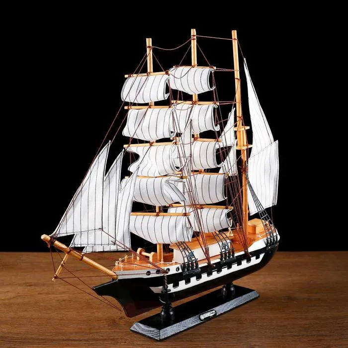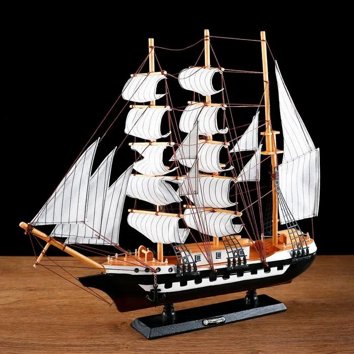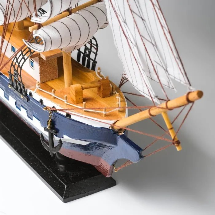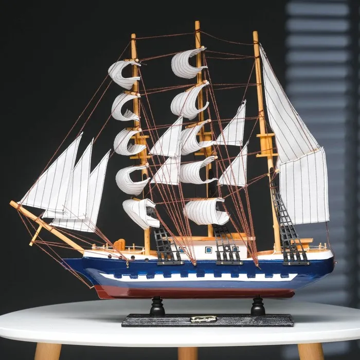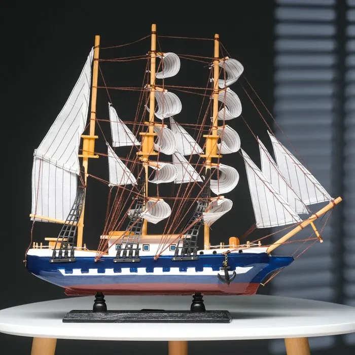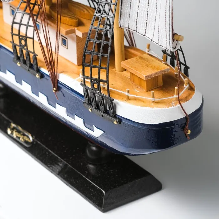 Сувенирная модель корабля «Рион», борта сине-чёрные, паруса бежевые с полосами, 50×44×10 см — Характеристики