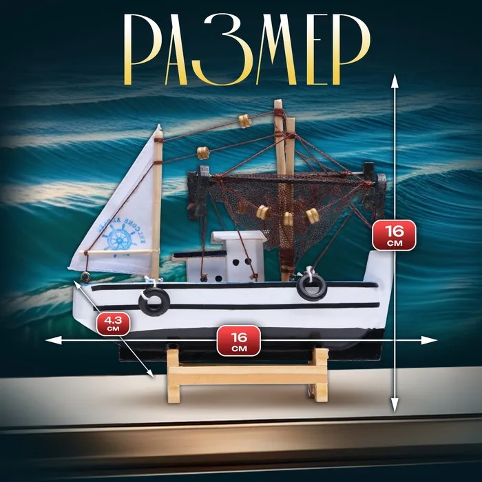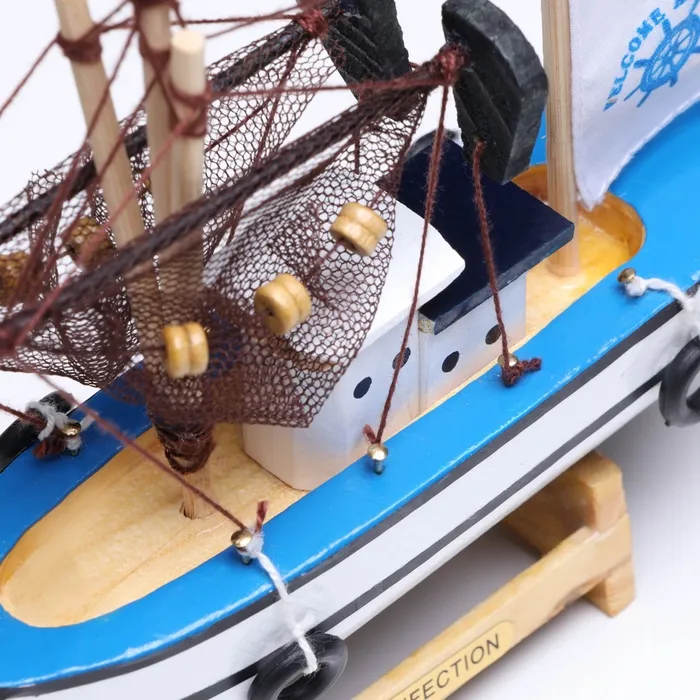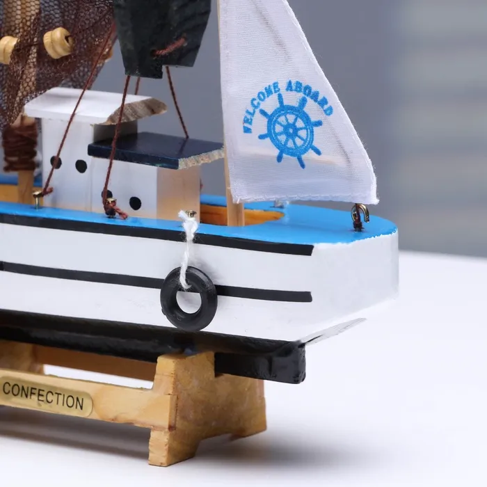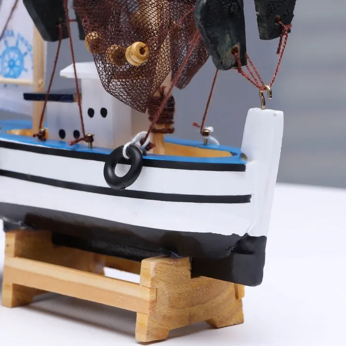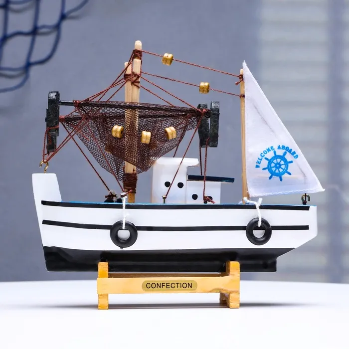 Сувенирная модель корабля для рыболовов добавит уютную морскую атмосферу в ваш дом или офис. Эта миниатюрная конструкция выполнена из дерева и станет отличным украшением интерьера. Светлый корпус аккуратно сочетается с белыми и коричневыми парусами, привнося легкость и элегантность.