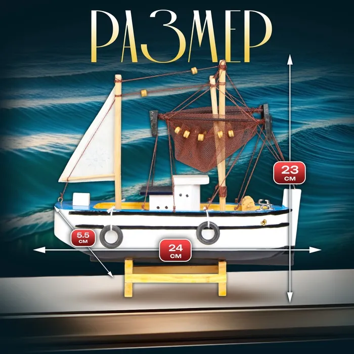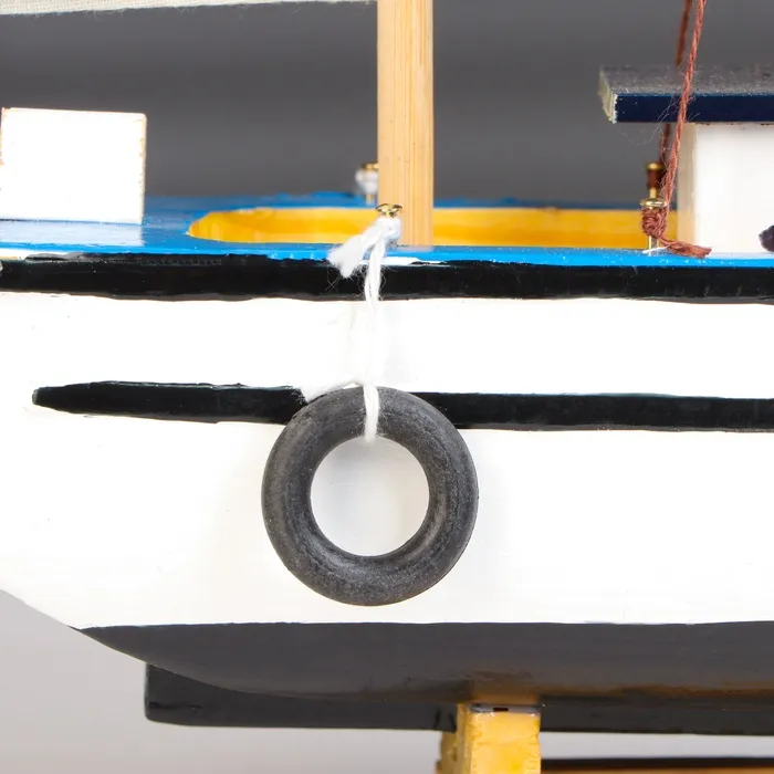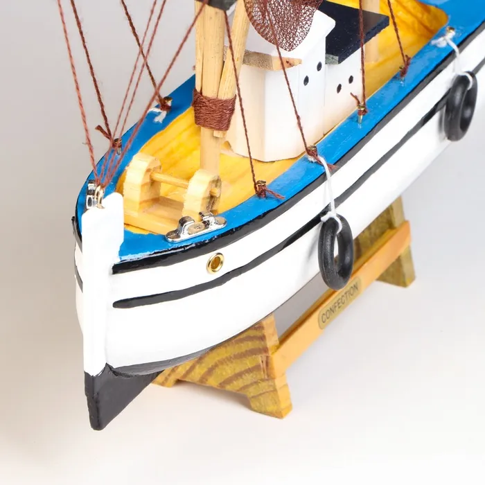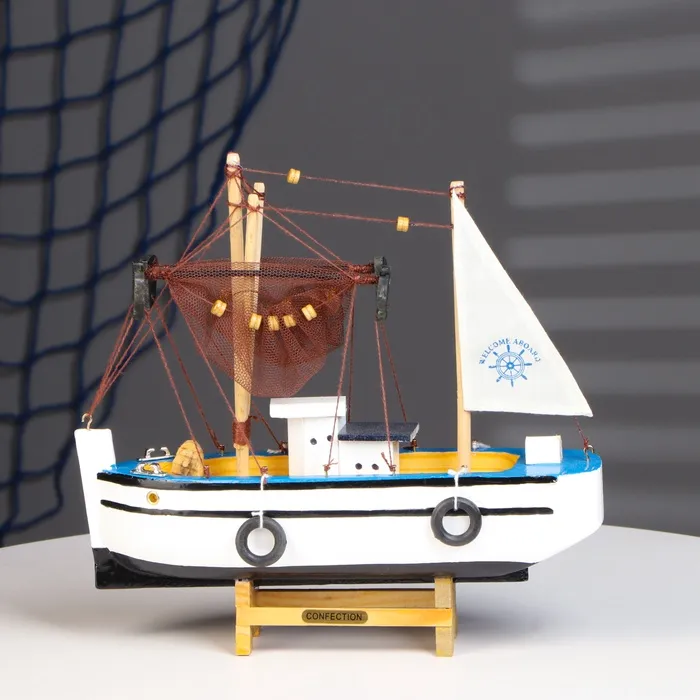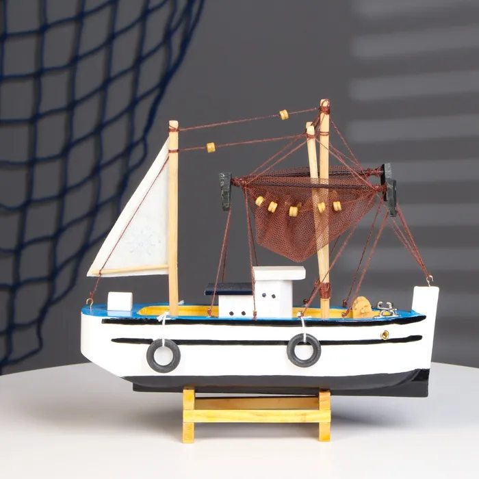 Деревянная модель рыбацкого судна идеально сочетается с различными стилями интерьера — от классического до современного. Этот аксессуар может стать центральным элементом декора, добавляющим уют и морское очарование вашему пространству.