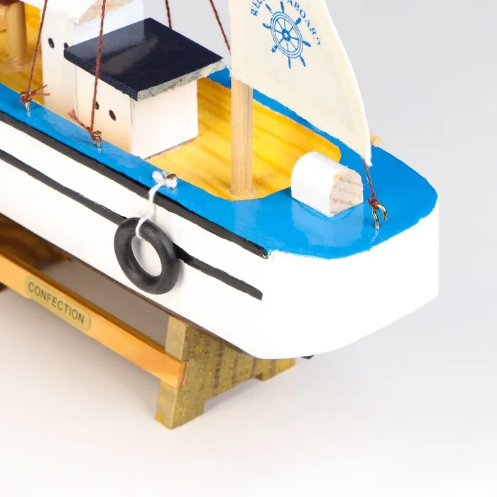 Миниатюрная модель рыбацкого судна станет изысканным украшением для вашего интерьера или оригинальным подарком для любителей морской тематики. Это изделие из дерева притягивает взгляд своей элегантной простотой и будет замечательным пополнением коллекции морских сувениров.