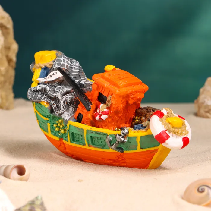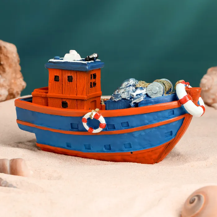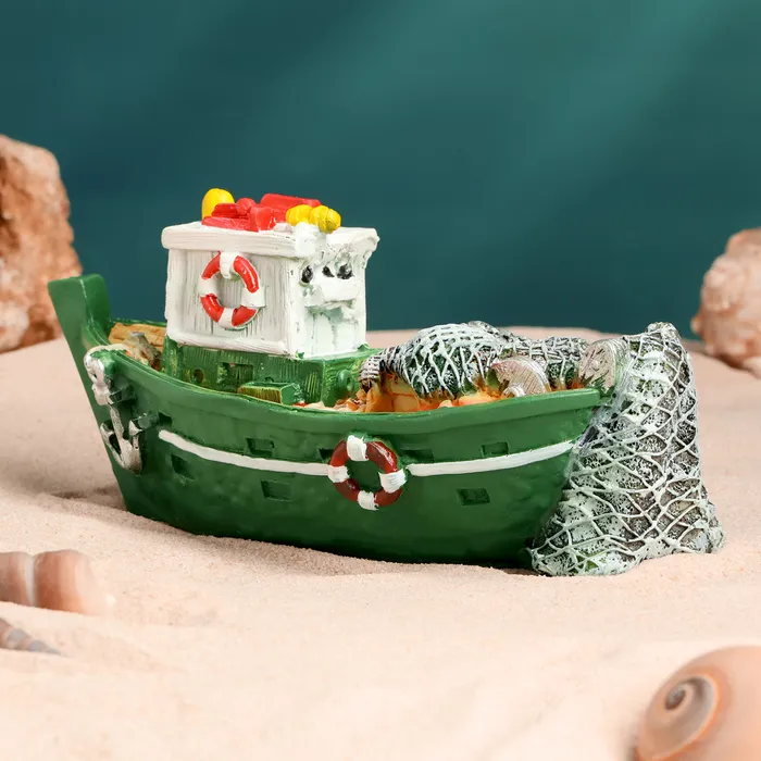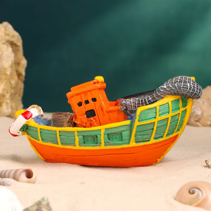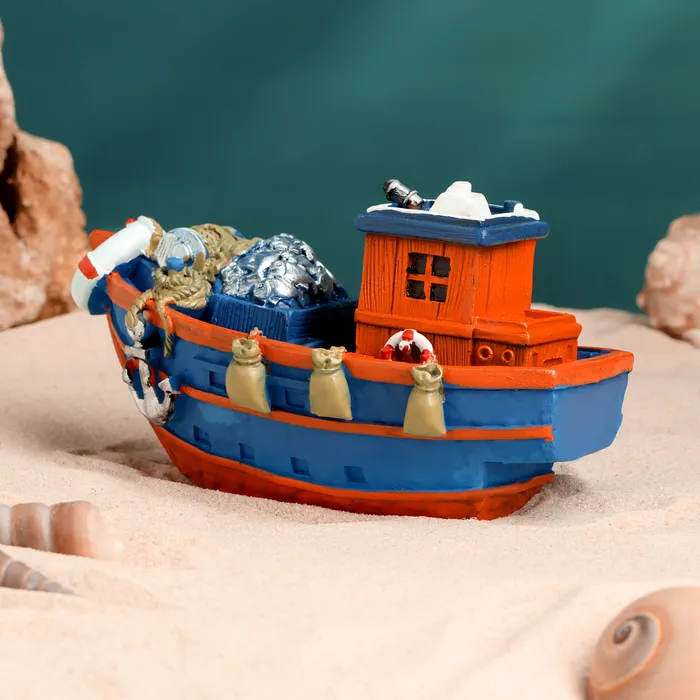 Сувенирная модель корабля «Рыбацкое судно цветное», фигурка полистоун, 16×7×7 см — Характеристики