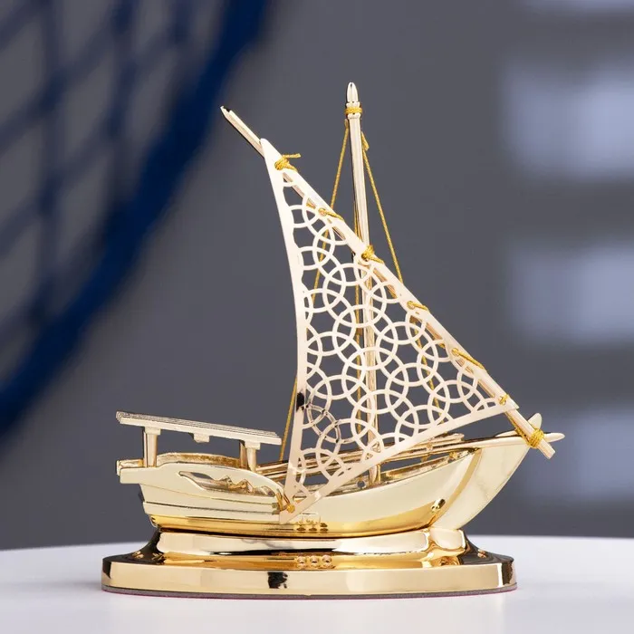 Сувенирная модель корабля металлическая «Парусник», золотистый, 11 см