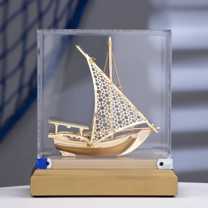 Сувенирная модель корабля металлическая «Парусник», золото, 11 см