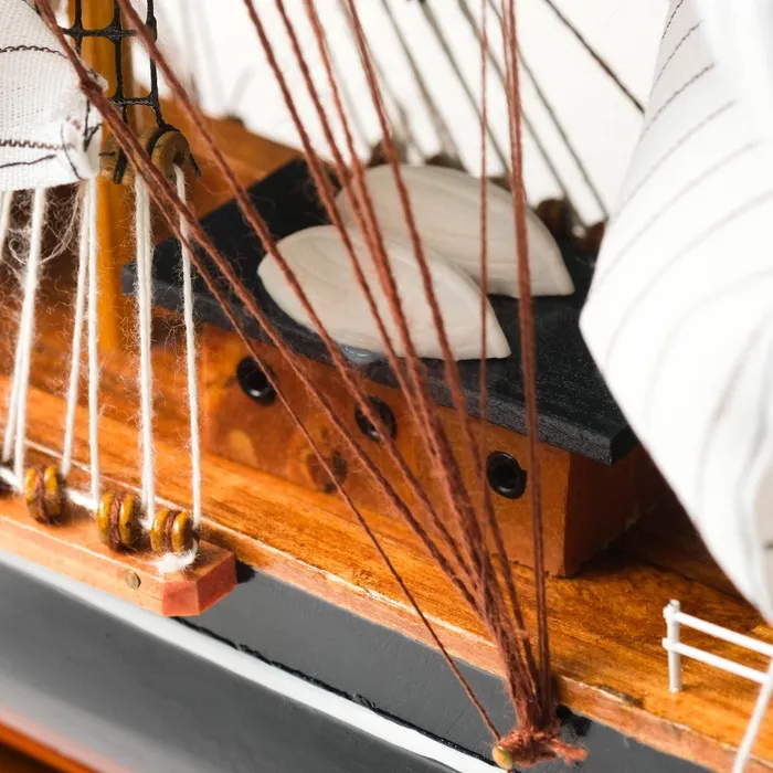 - Материалы высокого качества: корпус из дерева и текстильные паруса гарантируют долговечность изделия.