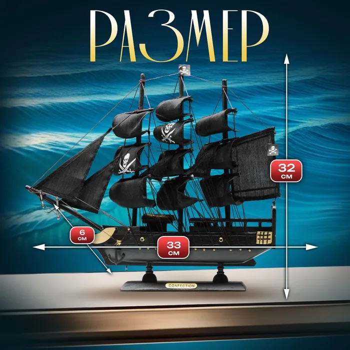 Сувенирная модель корабля «Веселый Роджер», 33×6×32 см — Характеристики