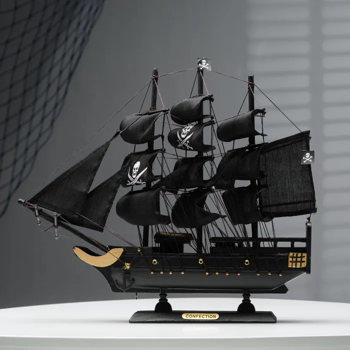 Модель корабля «Веселый Роджер» — это уникальный сувенир, который привнесёт в ваш интерьер атмосферу морских приключений и пиратского шика. Этот чёрный средний корабль, станет ярким акцентом в любой комнате.