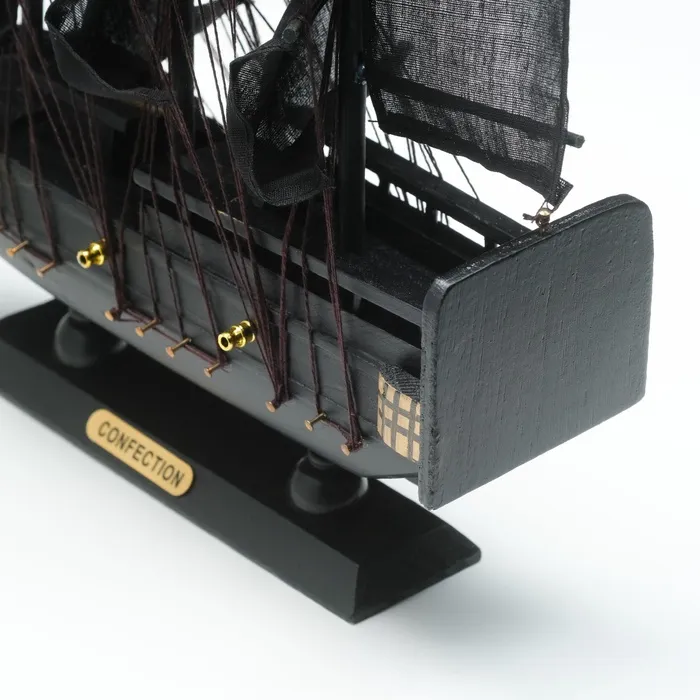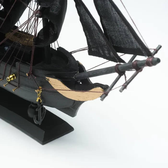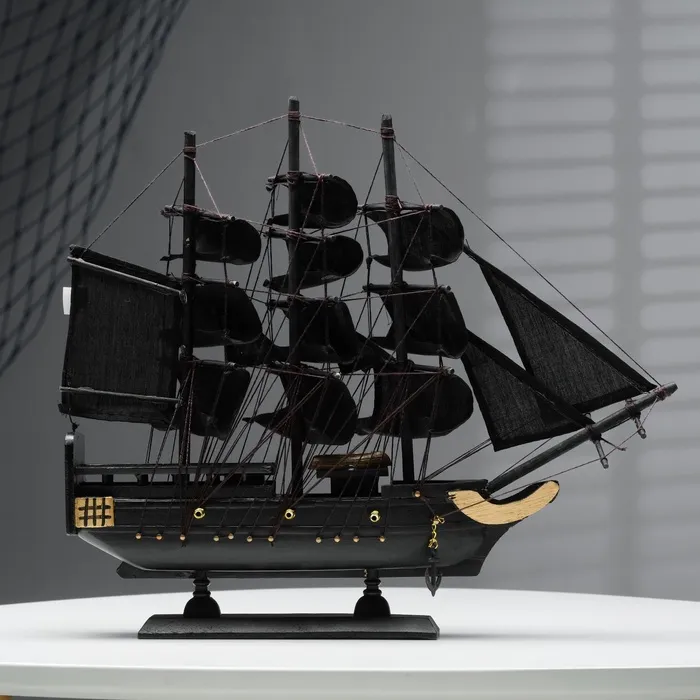 - Черные борта и паруса создают стильный и таинственный образ.