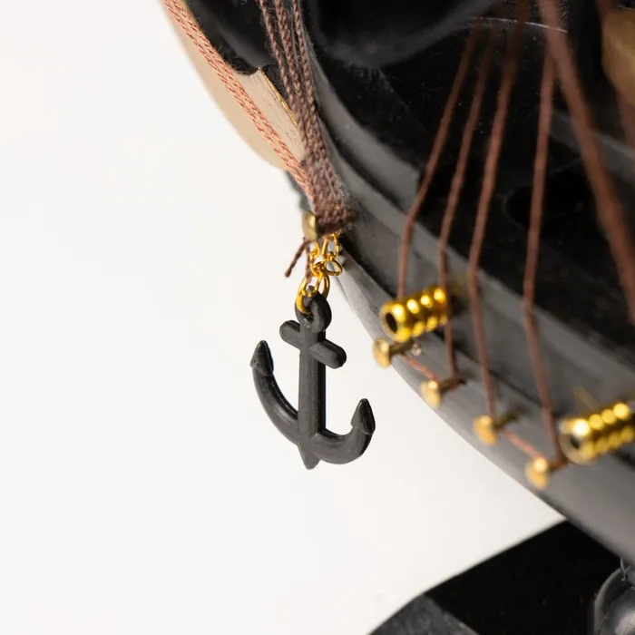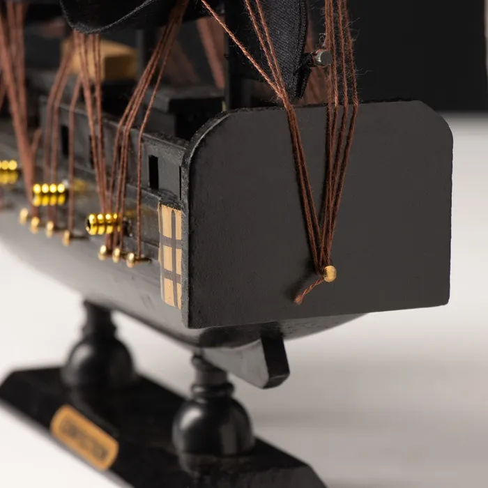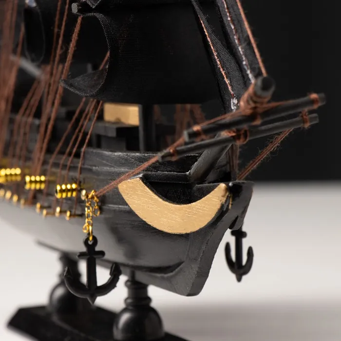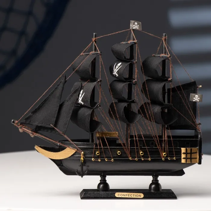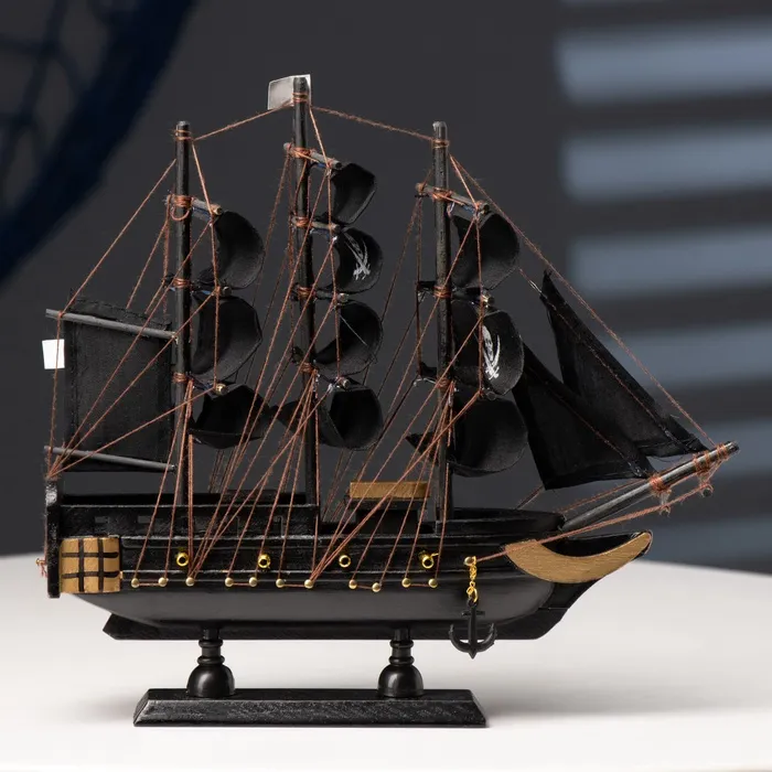 Миниатюрная сувенирная модель морского судна с чёрными парусами — это идеальный подарок для коллекционеров и любителей морской тематики. Эта модель отличается размером и изысканным дизайном, напоминающим настоящие пиратские корабли, и станет стильным украшением для дома или офиса.