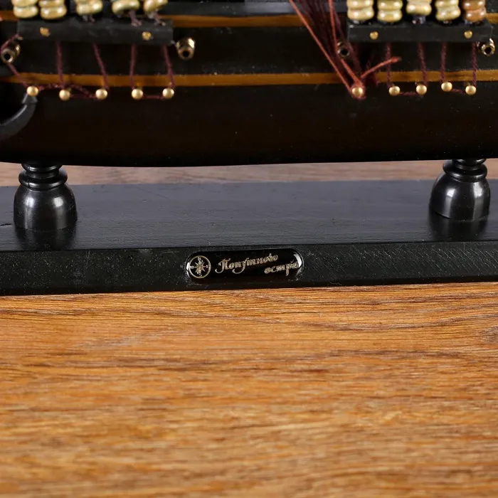 Модель корабля «Волк» — оригинальный подарок на 23 Февраля или украшение для вашего интерьера. Эта изящная миниатюра в черных оттенках создана из дерева и текстиля, что придаёт ей утончённый и элегантный вид.