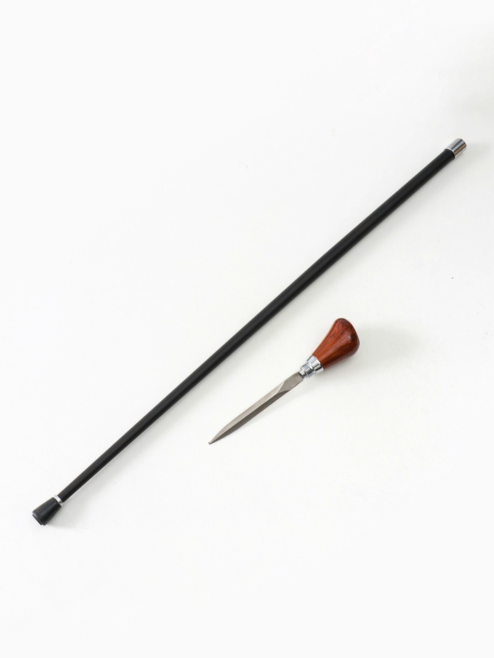 • Прочный клинок длиной 15 см скрыт в корпусе трости.