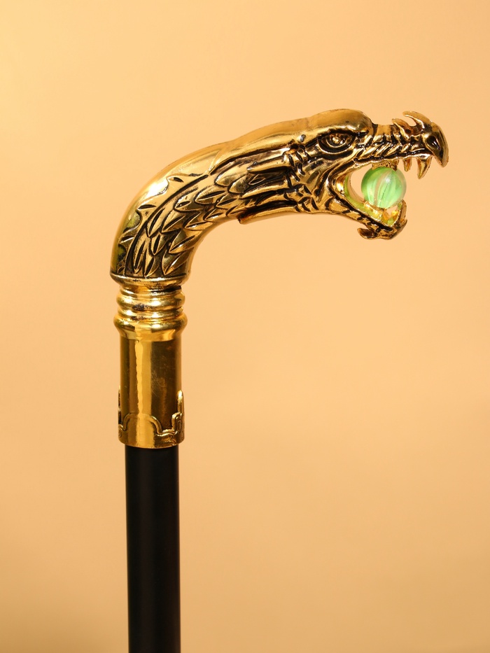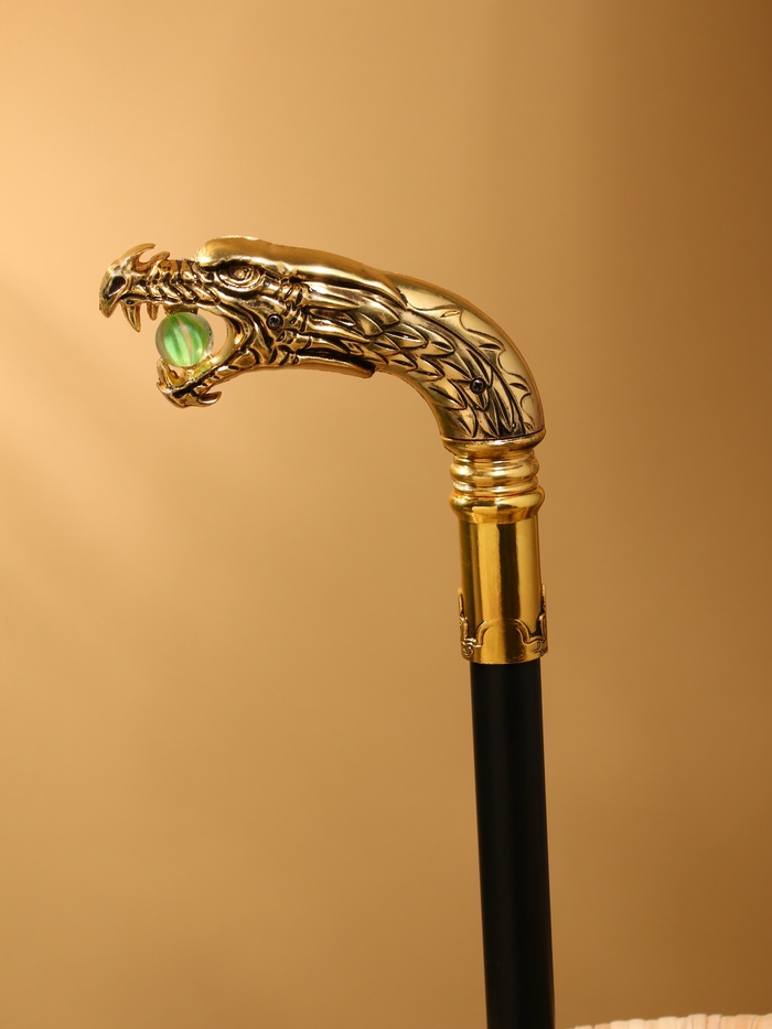 Представляем вашему вниманию уникальный аксессуар, который станет не только стильным дополнением вашего образа, но и настоящим произведением искусства — трость с клинком и набалдашником в виде золотистого дракона. Эта модель высотой 86 см привлекает внимание своим изысканным дизайном и функциональностью, что делает её идеальным выбором для истинных ценителей оригинальных предметов.