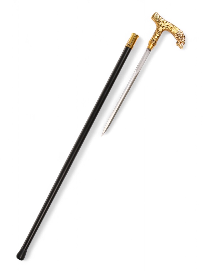Элегантная трость с клинком и набалдашником в виде зверя станет не только стильным аксессуаром, но и выразительным элементом вашего образа. Длиной 90 см и чёрным цветом она привлекает внимание и подчеркивает индивидуальность. Золотистая рукоять добавляет изысканности и комфорта в использовании, делая её идеальным выбором для ценителей утончённого стиля.