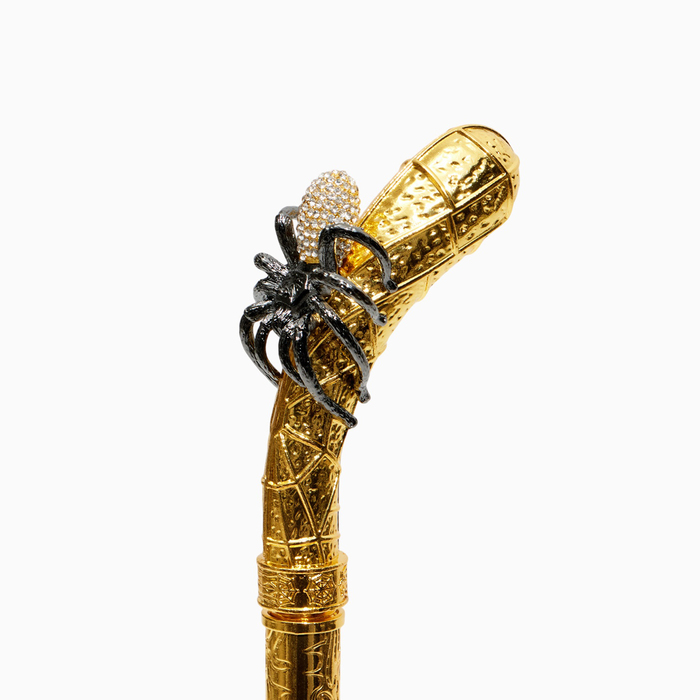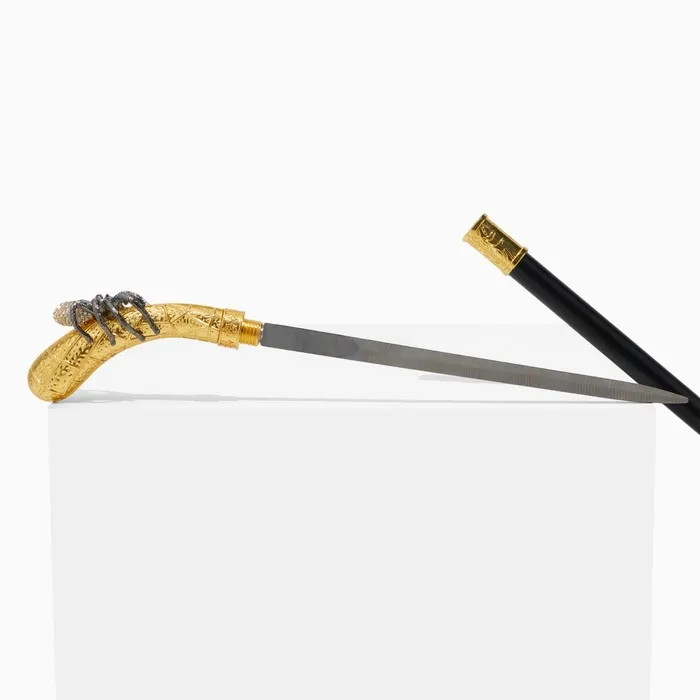 Позвольте представить вам уникальный аксессуар, который станет не только стильным дополнением вашего образа, но и настоящим произведением искусства — трость с клинком. С высотой 95 см и элегантным черным цветом, она привлекает внимание и создает атмосферу загадочности, а золотистая ручка в форме паука добавляет ей оригинальности и шика.