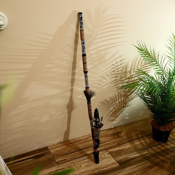 Вам наверное уже знакомо такое оригинальное оружие древних цивилизаций, как это. Кто-то знает его по фильмам, кто-то уже пробовал стрелять из такой духовой трубки, а быть может, кто-то даже коллекционирует такого рода оружие. Сувенирное оружие сарбакан "Охота" 106х7х3 см станет актуальным подарком или замечательным предметом интерьера, который великолепно будет смотреть в гостиной, каминной или даже в личном кабинете. Приятно иметь отголоски племен Древних цивилизаций Индонезии и Южной Америки.