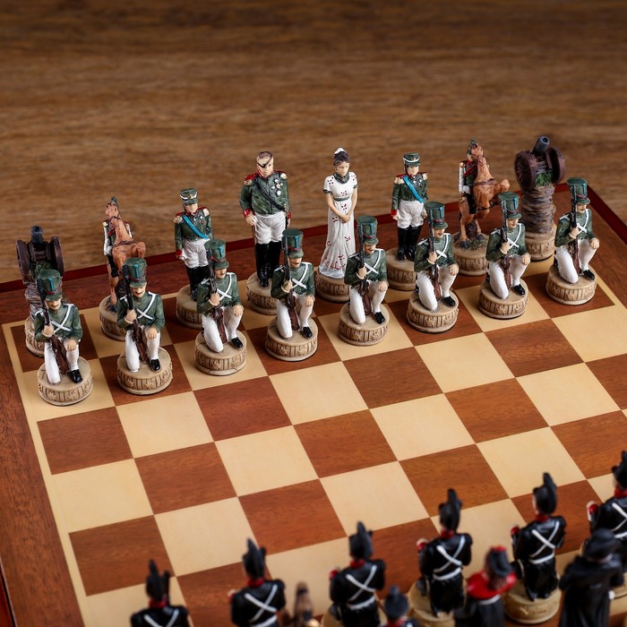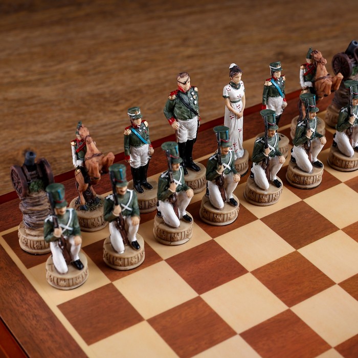 Сувенирные шахматы «Отечественная война», деревянная доска 36×36 см, полистоун