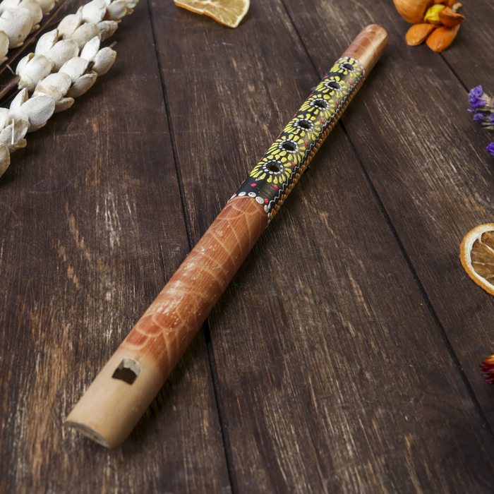 Сувенирный музыкальный инструмент бамбук "Флейта расписная" 60x3,5x3,5 см