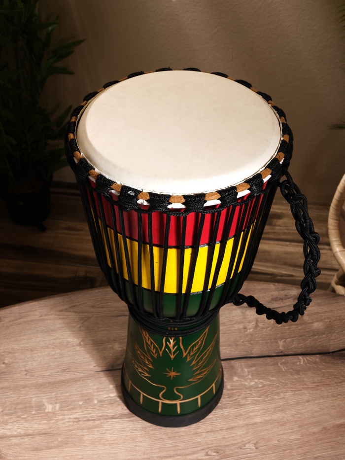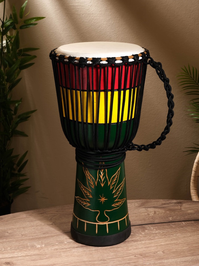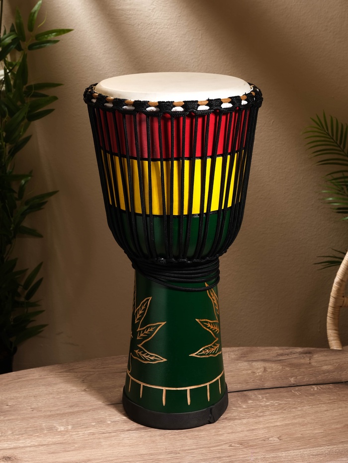 Сувенирный музыкальный инструмент барабан Джембе "Раста" махагон, 28х28х60 см — Характеристики