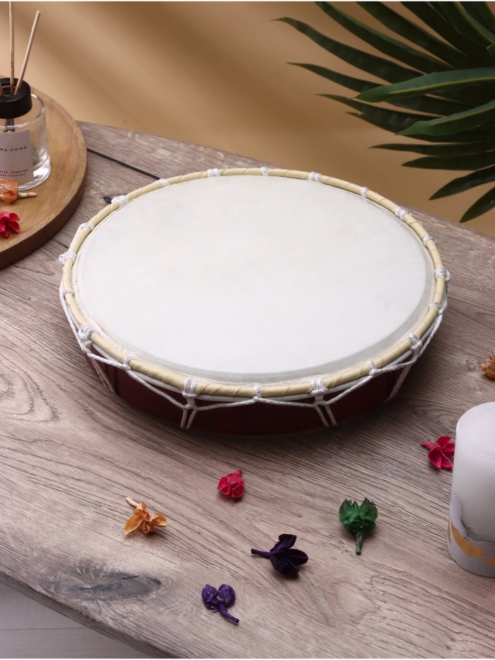 Глядя на этот инструмент, сразу возникает вопрос: «Разве это бубен? И где привычные металлические колокольчики по бокам, которые начинают звенеть при ударе?». Дело в том, что существует множество разновидностей бубнов. А сувенирный музыкальный инструмент Бубен "История прошлого" 30 см выполнен индонезийскими мастерами по реальному образцу бубна бурятских шаманов. Так почему бы не пополнить таким музыкальным инструментом свою коллекцию? А быть может украсить интерьер гостиной, каминной, дачи или даже офиса.